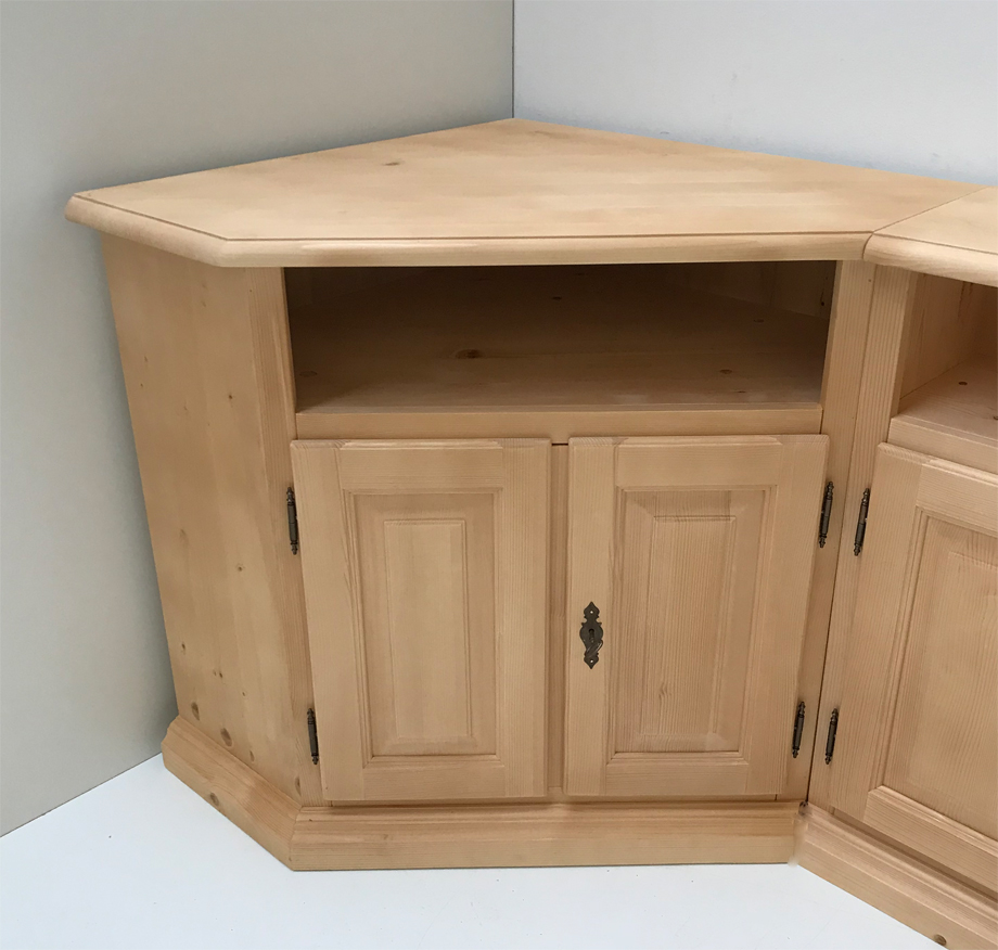 1 TV-Eckkommode, Schenkellänge 80/80 cm, Höhe 87 cm !!, oben offenes Fach, unten, 2 Türen, 1 Boden,
