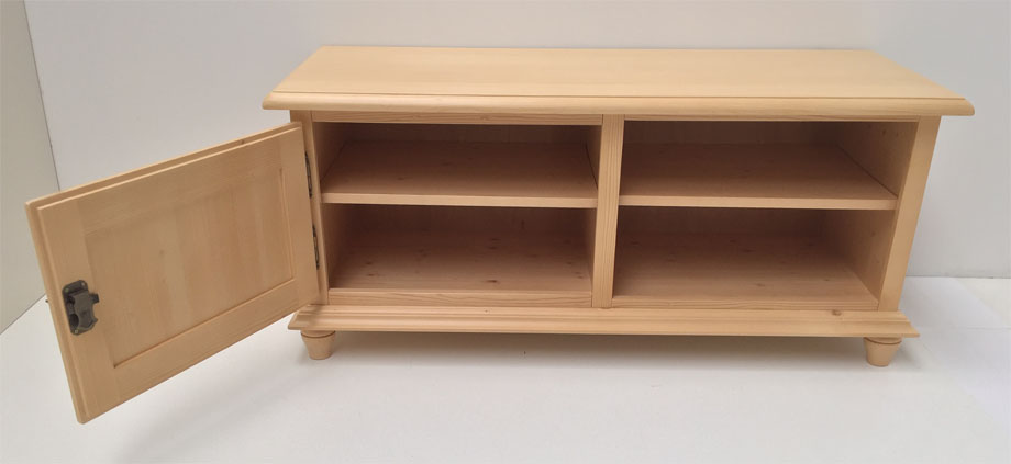1 TV- Breitkommode, Modell 1058, Abm. 126/55/51 cm, 1 Türe, 1 Innenboden, rechts offen, 1 Boden