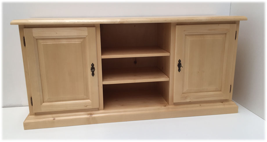 Abm. 160/75/45 cm, B/H/T mit Sockel, aussenliegende Scharniere , Mittig offenes Teil mit 2 Böden, 2 Fachböden frei einteilbar verstellbar, Fichte massiv, Rosner Hartwachs,
