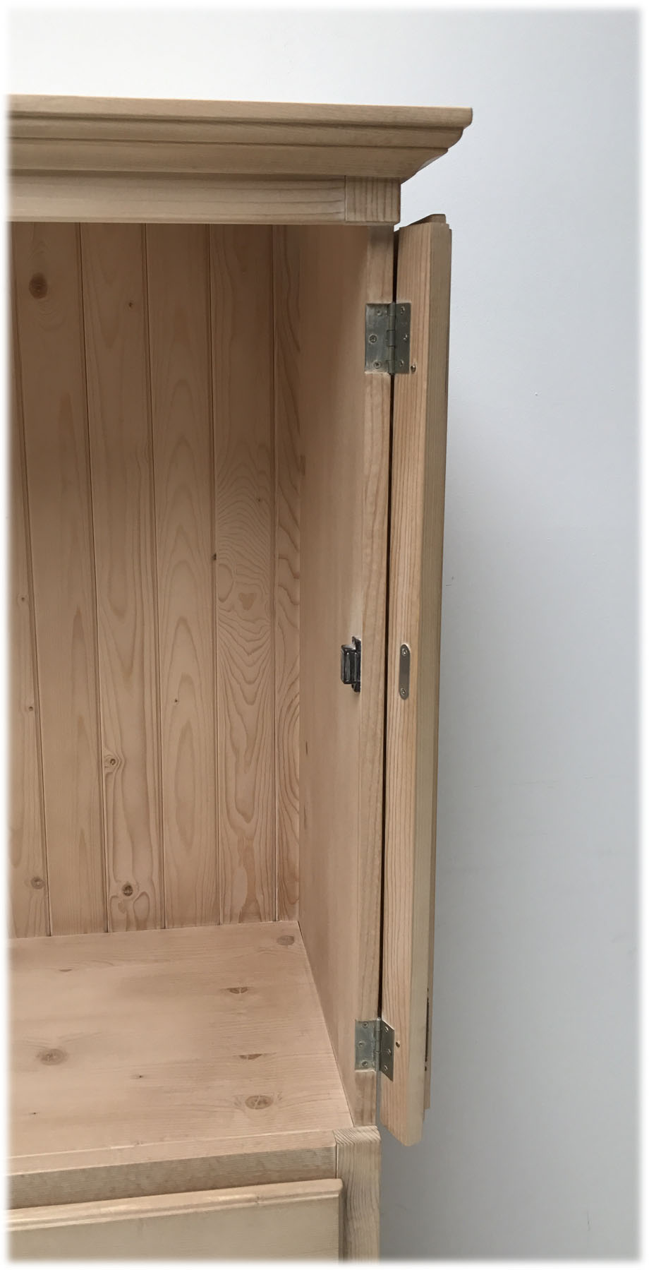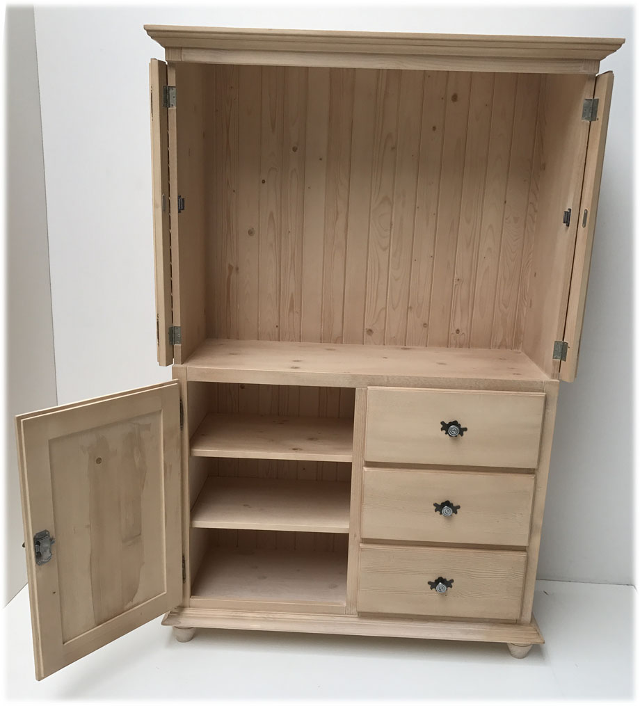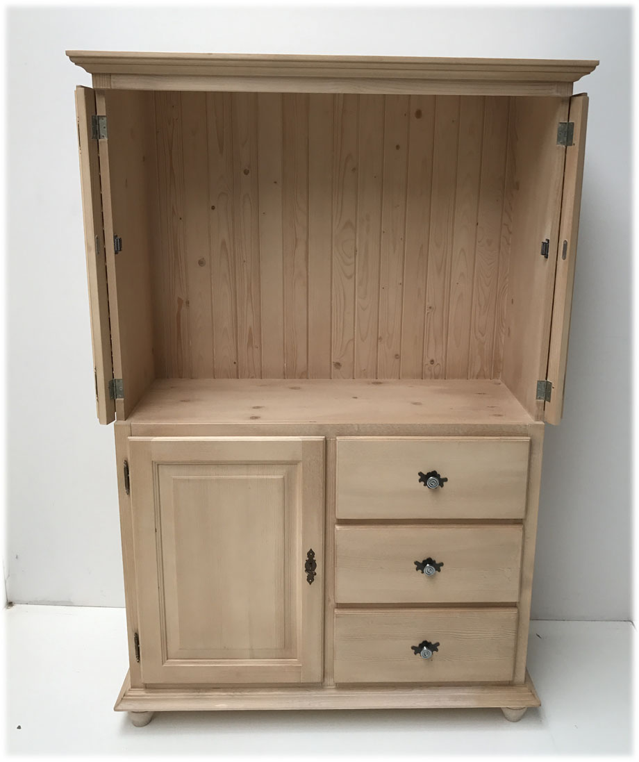 Abm. 112/168/63 cm, B/H/T, Fichte massiv, Innenmaß für Fernseher: 84/68/53 cm, in Rosner gewachst