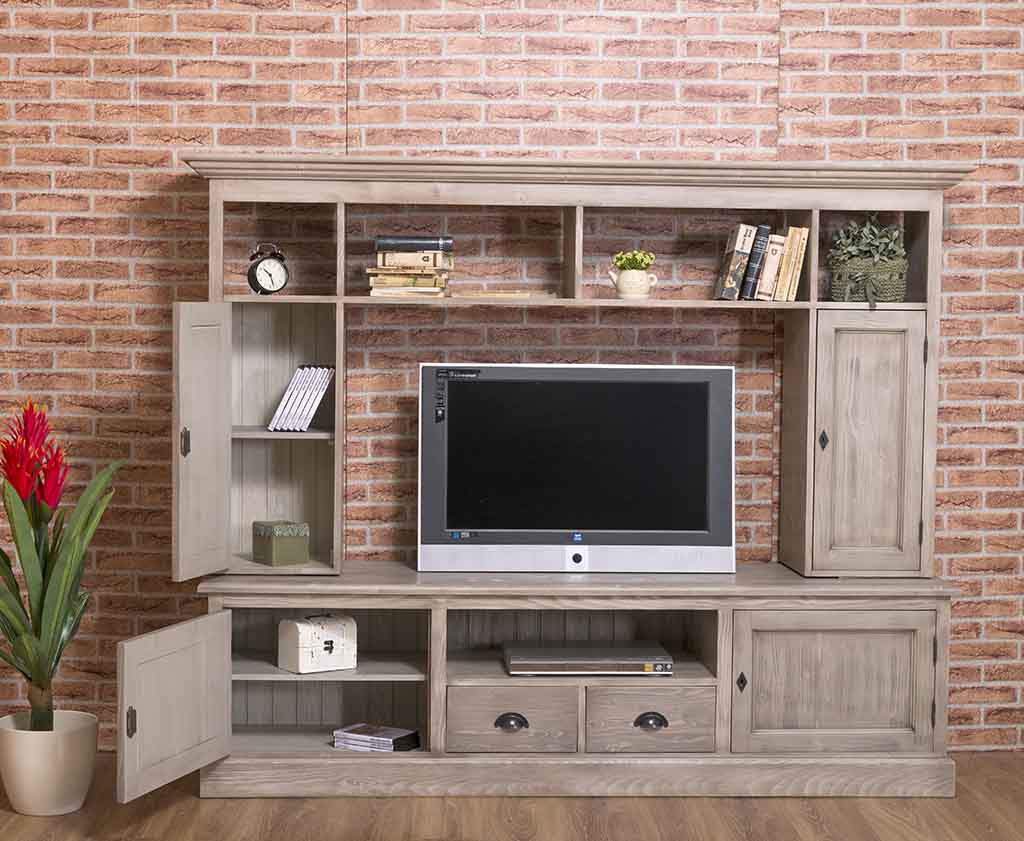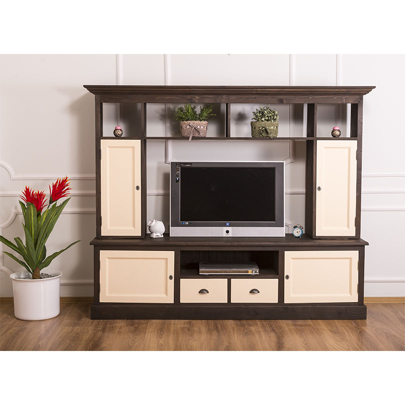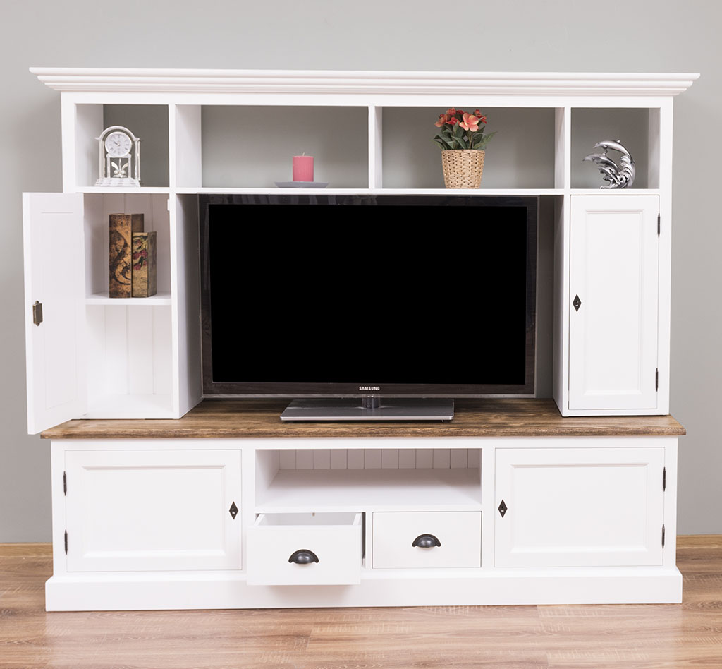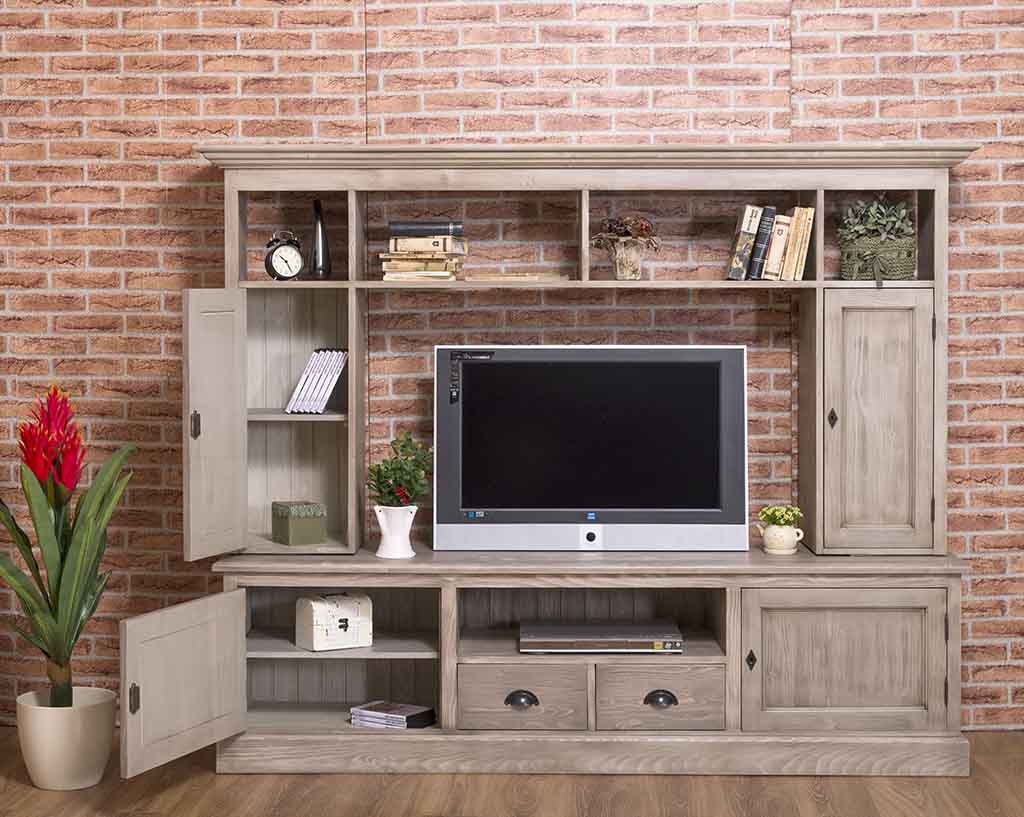 TV-Wohnwand, 4 Türen, 2 Schubladen, 6 Fächer, Kiefer massiv