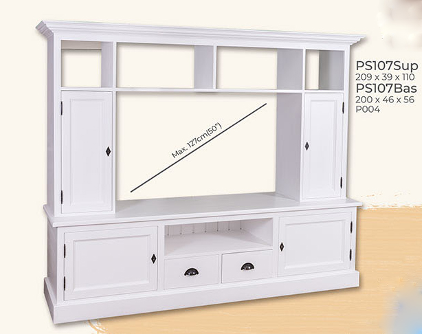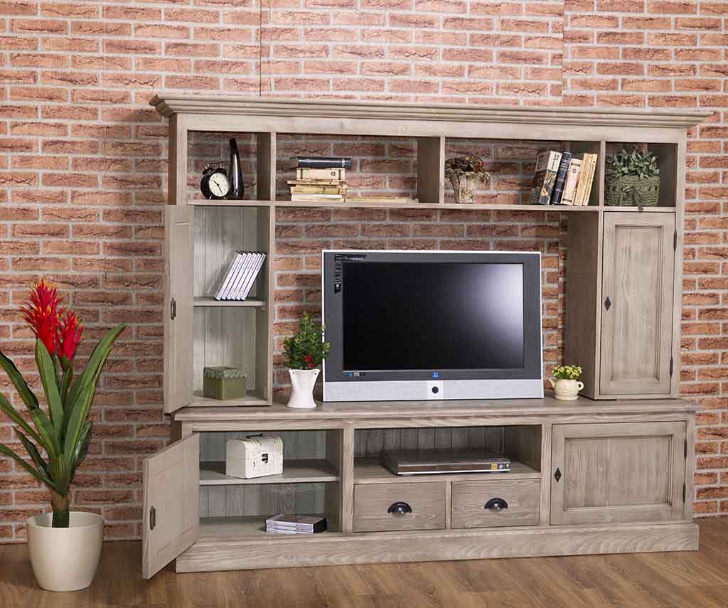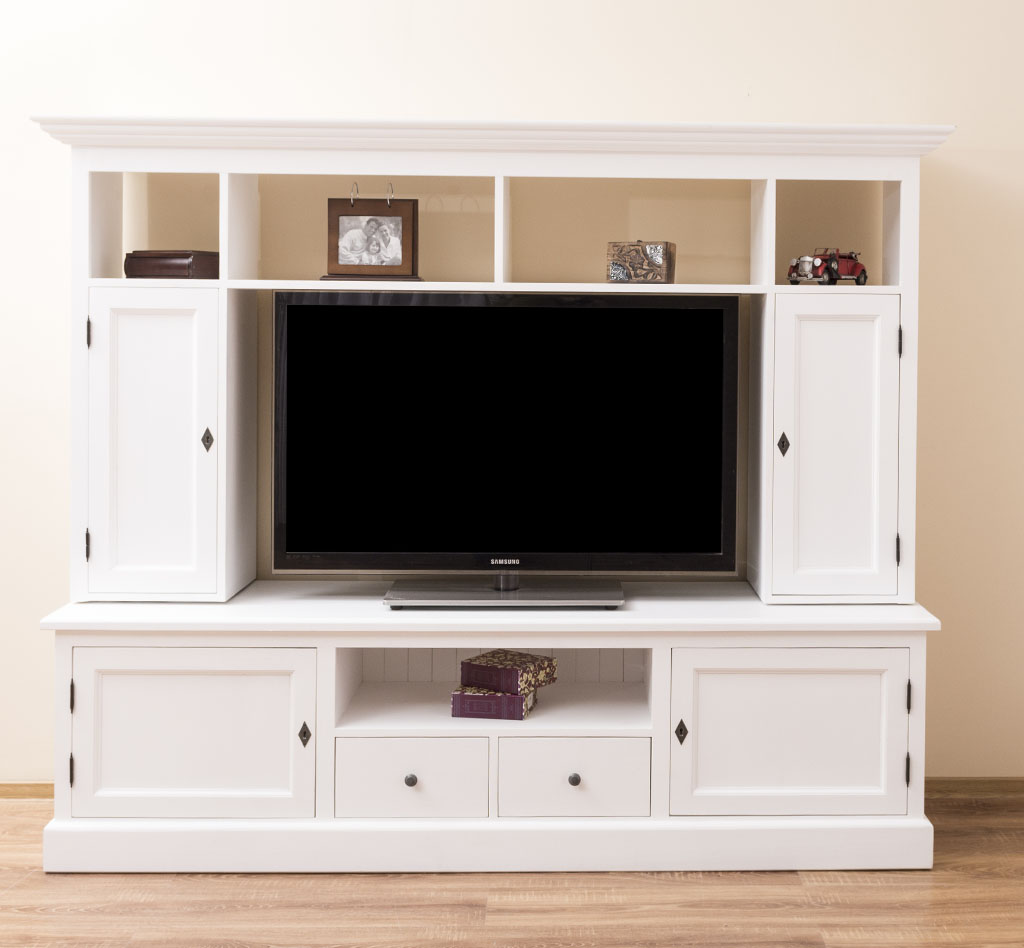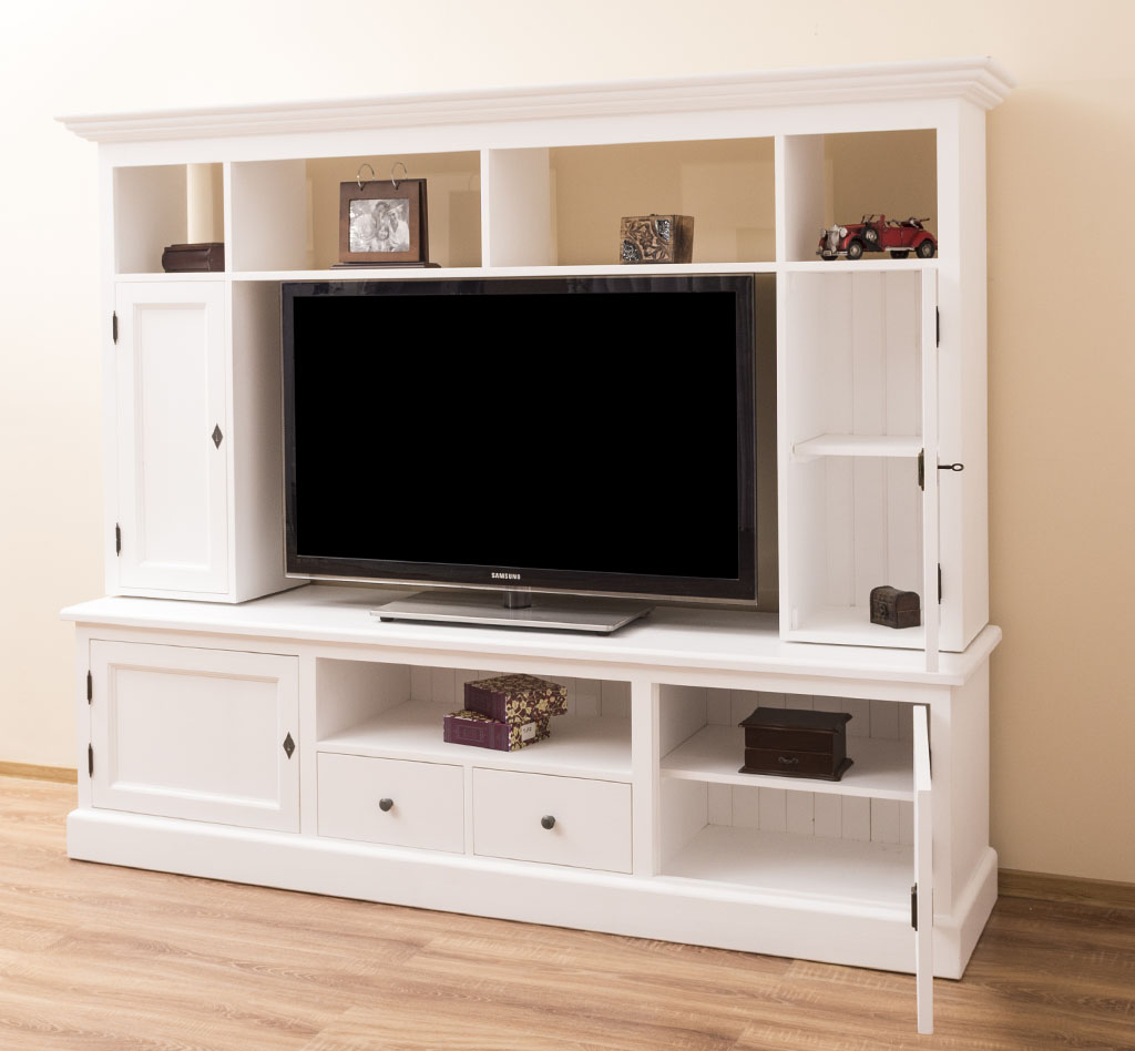 TV-Wohnwand, 4 Türen, 2 Schubladen, 6 Fächer, Kiefer massiv
