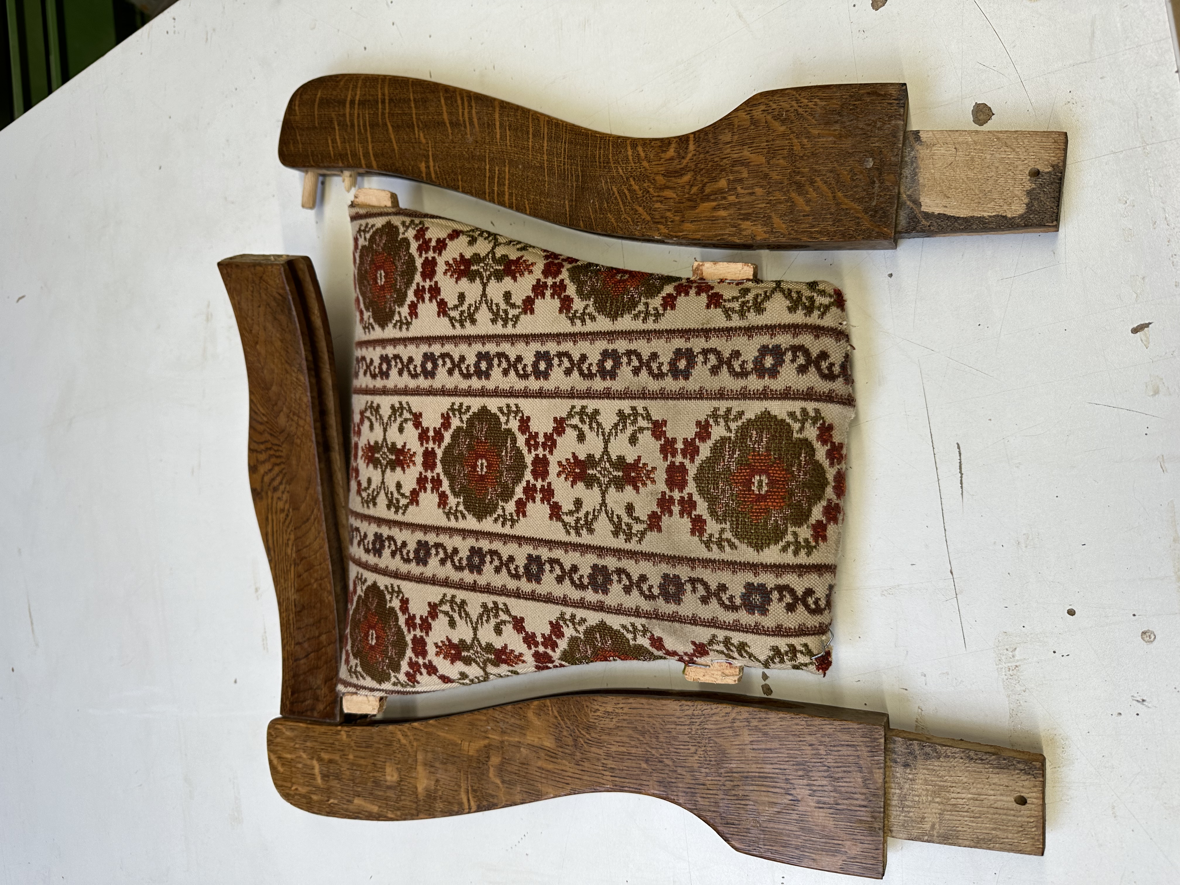 Stuhlsitz und Rücken, Neupolsterung und Bezug, Stoffbedarf: ca. 0,7 lflm