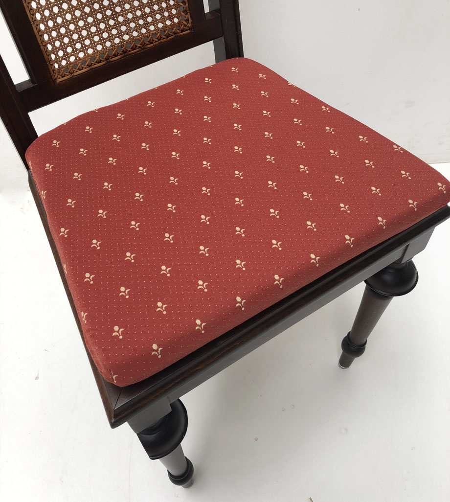 Polster für Antike Esszimmer Stühle. Sitz genäht, Kundl rot , mit Laschen und Wendedruckknopf