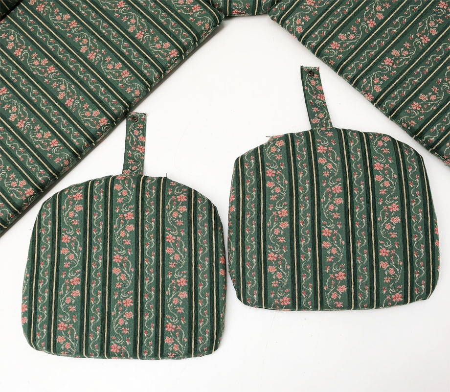 Stuhlkissen mit Lasche und Wendedruckknopf, Alle Polster mit eingenähtem Reissverschluss zum Abziehen und Waschen
