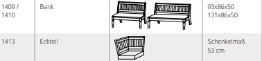 3 Eckbankgrößen Alina: