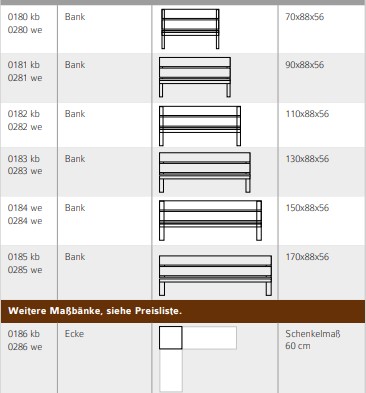 Lieferbare Polstersätze für Eckbank und Stühle:
