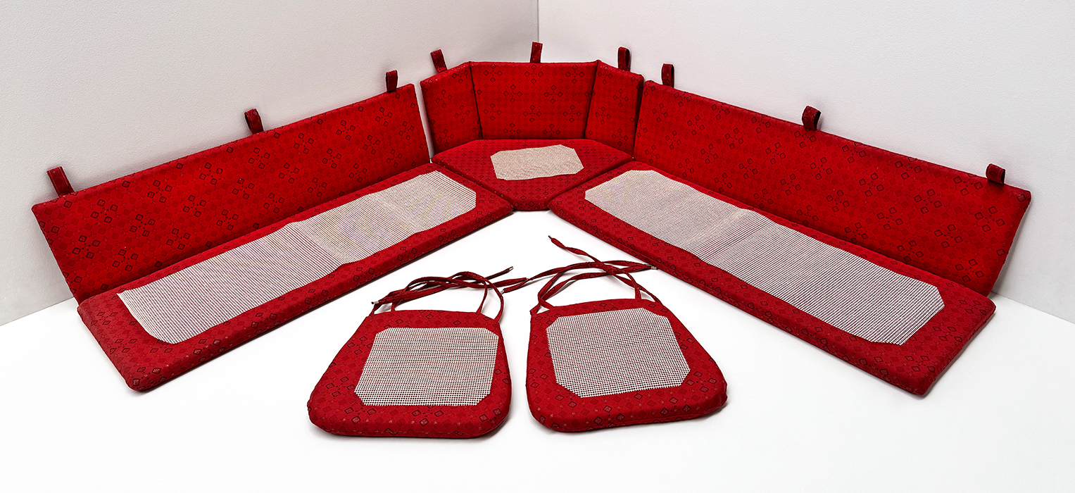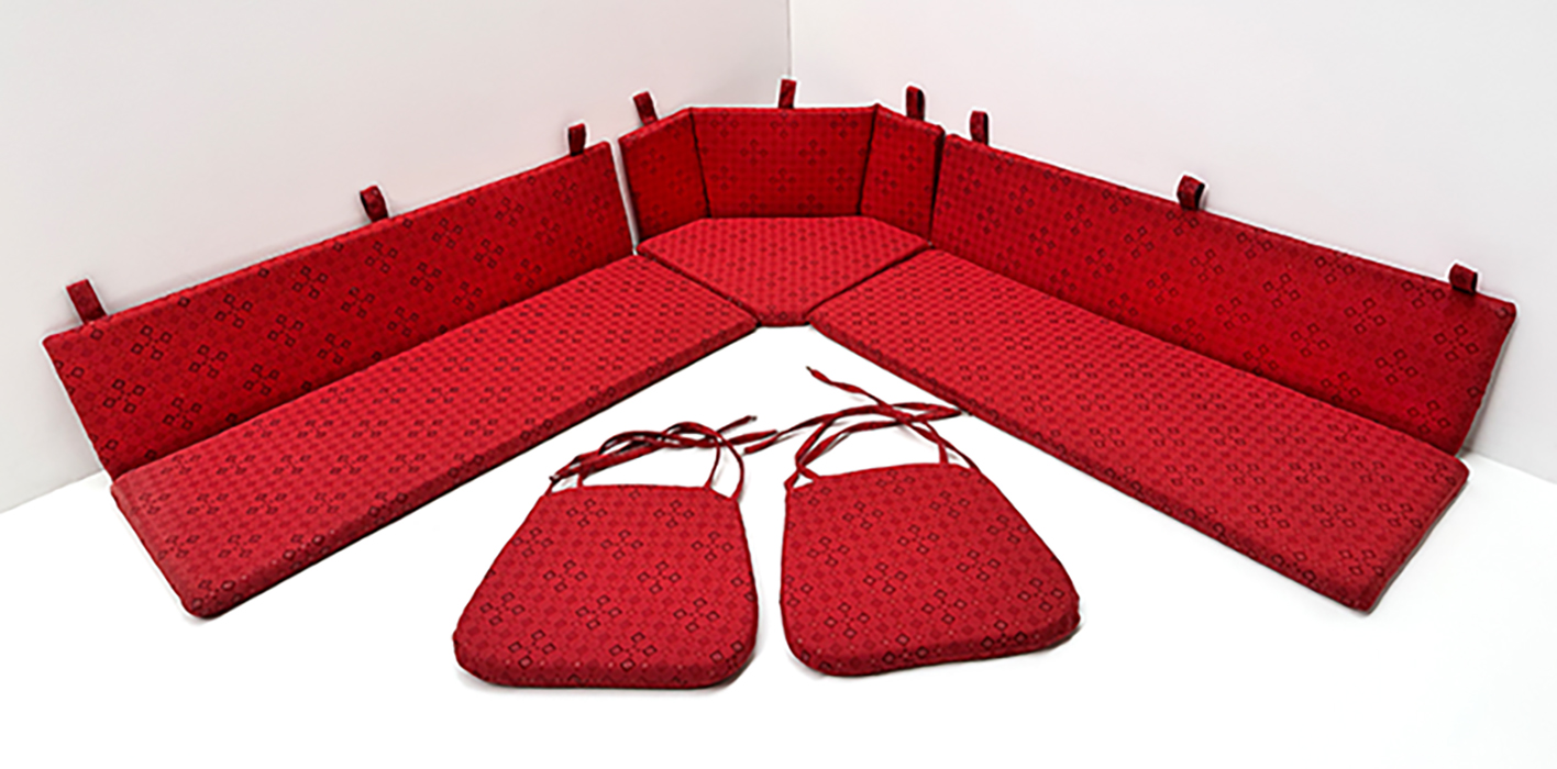Lose genähter Polstersatz für Eckbanksitze und Rückenkissen, 2 Sitze lang 120 cm, 1 Ecksitz nach Schablone , 2 Rücken lang 120 cm,