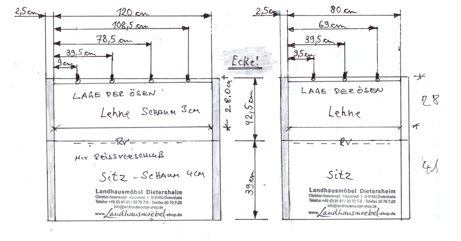 Wir erstellen Ihnen Polstersätze für Landhausmöbel, EKA- Eckbankgruppen und Fremdfabrikate nach Schablonen die Sie uns zusenden können: