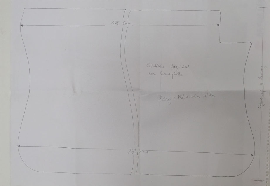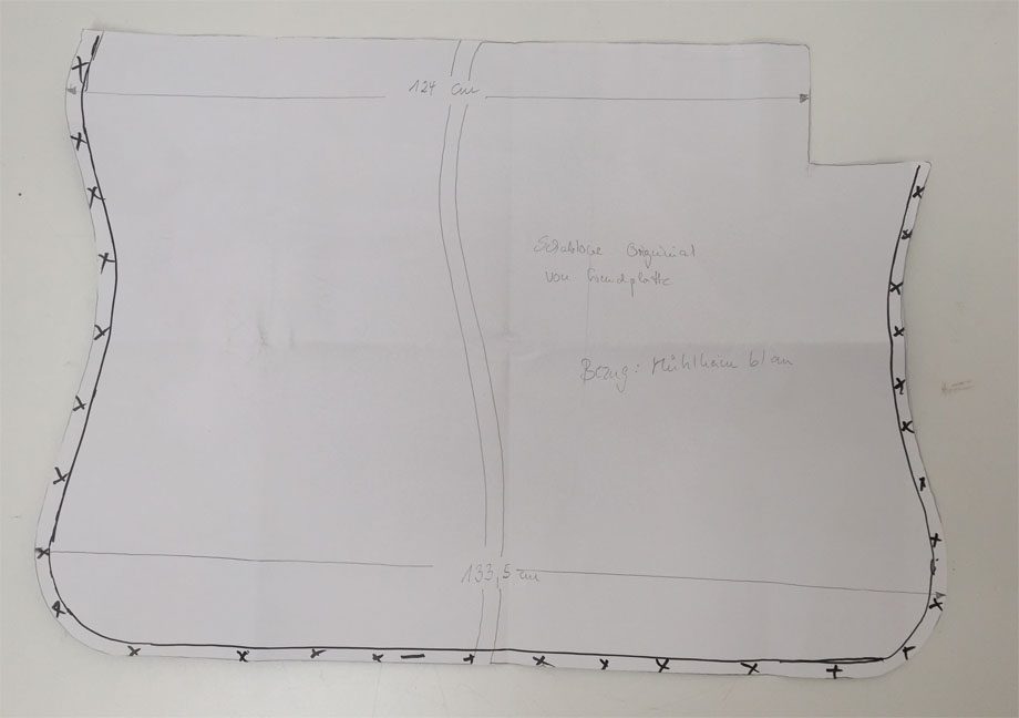 Die Größe der Schablone wählen Sie vorne etwas kleiner als der Banksitz damit die Scheuerkante vorne etwas zurückspringt (ca. 1 cm).