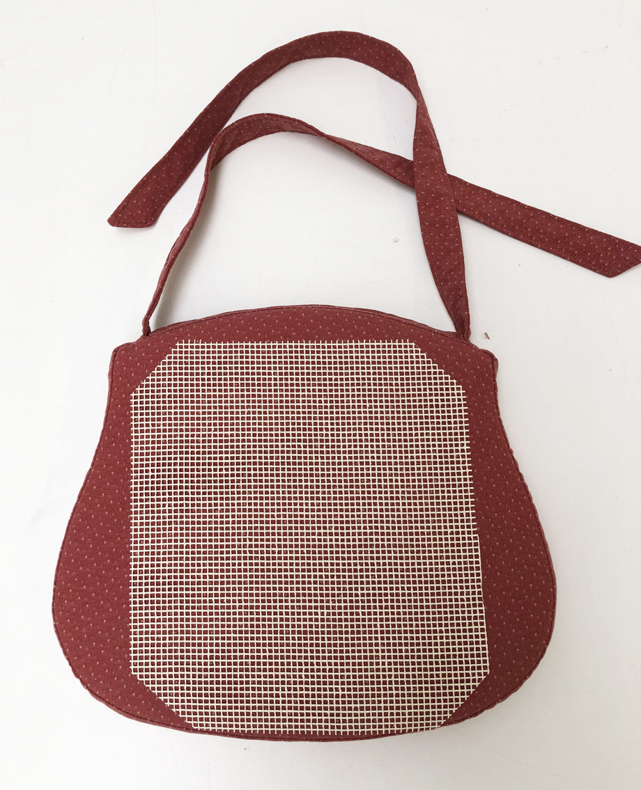 nach Kundenvorgabe Bild und zugesandter Papierschablone hergestelltes genähtes Kissen, mit Stegen und Bändern zum Anbinden.