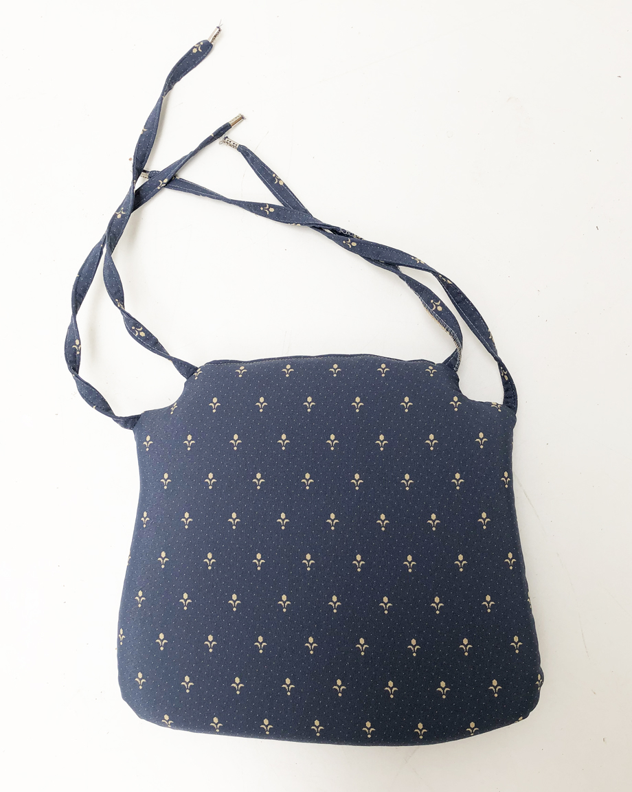 Stuhlkissen Kundenvorgabe genäht nach Schablone mit Bändern zum Anbinden, Stoff Kundl blau