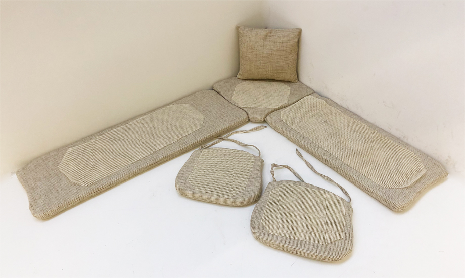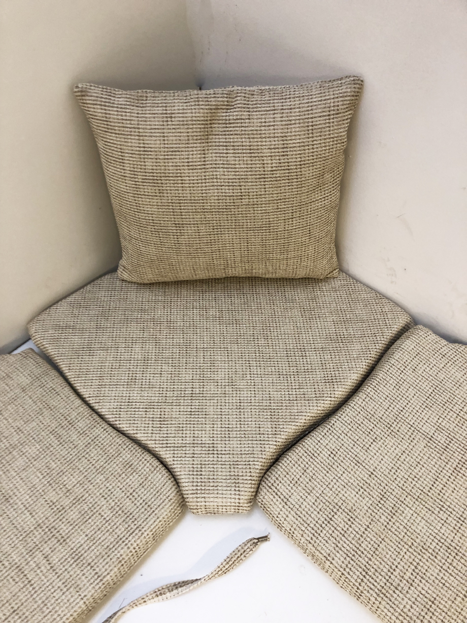 Polstersatz lose genäht für Eckbankgruppe Amberg klein 185/150 cm,, inkl. 1 Sofa Kissen 40/40 cm gratis !! Alles in Ausführung lose genäht mit Reissverschlüßen zum Abziehen und Bänder an den Stuhlkissen zum Anbinden ! Stabile fest eingenähte Bänder aus dem gleichen Möbelstoff, Enden der Bänder gekrimpt ! Gegen Verrutschen mit Antirutschunterlage !