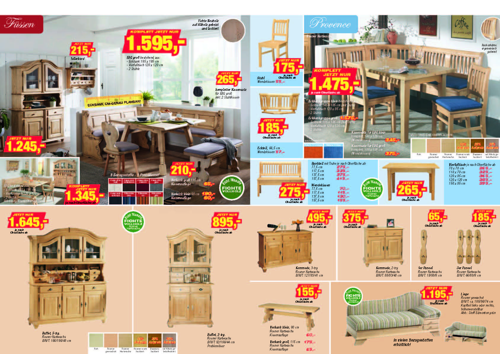 Der neue Prospekt Wohnen im Landhaus Stil 2-2018 ist druckfrisch erschienen. Interessante Angebote zum Schlafzimmerprogramm DAVOS, Fichte Rosner Hartwachs, Schlafzimmerprogramm MOZART mit Raute, in Fichte Hartwachs, Schlafzimmerprogramm TRIENT, Fichte Hartwachs mit seinen vielen verschiedenen Kombinationsmöglichkeiten! Objektschlafzimmer TELFS und KÖSSEn, mit geschlossenem Sockel bei den Betten, auf Altholz gebeizt und lackiert. Eckbankprogramm FÜSSEN, neu un auch auf ALTHOLZ gebeizt und lackiert, Eckbankprogramm PROVENCE in Fichte in verschiedenen Farbtönen lieferbar ! Kastenmöbelprogramm FÜSSEN, in vielen verschiedenen Ausführungen. Sofa Liege CHIEMGAU in vielen verschiedenen Lagerstoffen preisgleich lieferbar !