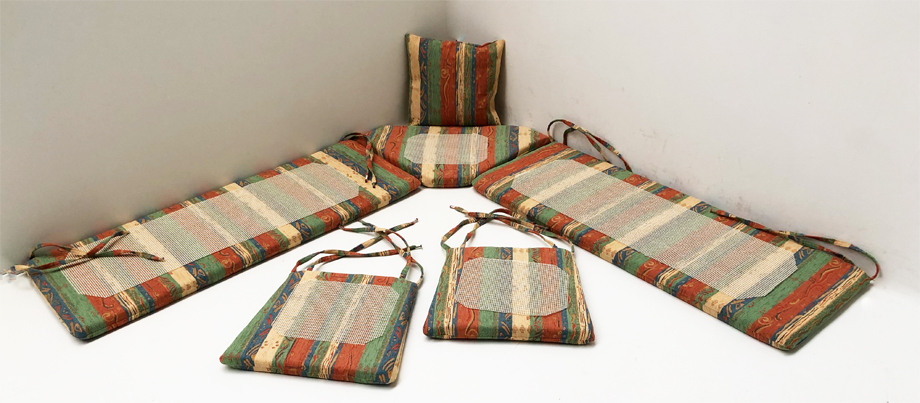 Kompletter Polstersatz für eine Eckbankgruppe, 5-tlg., für Eckbank und 2 Stühle, inkl. 1 Sofa Kissen 40/40 cm gratis