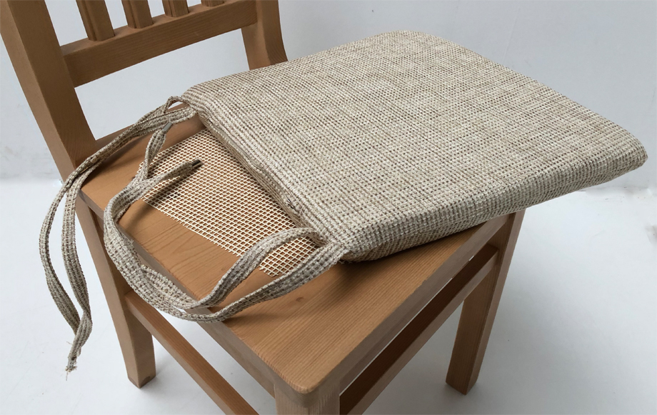 mit Kissenauflage Polster lose genäht mit Reissverschluß zum Abziehen, mit stabilen genähten Bändern zum Festbinden aus dem gleichem Möbelstoff