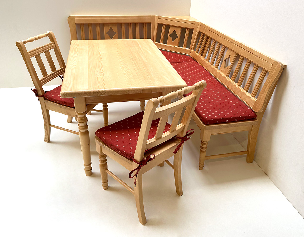 Eckbankgruppe Rangau 150/190, Tisch 80/120 cm, 2 Stühle, Kundl rot