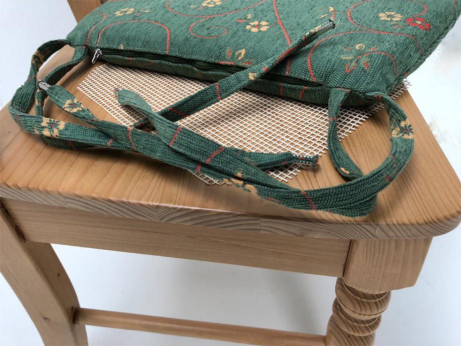 Kissenauflage Polster lose genäht mit Reissverschluß zum Abziehen, mit stabilen genähten Bändern zum Festbinden aus dem gleichem Möbelstoff