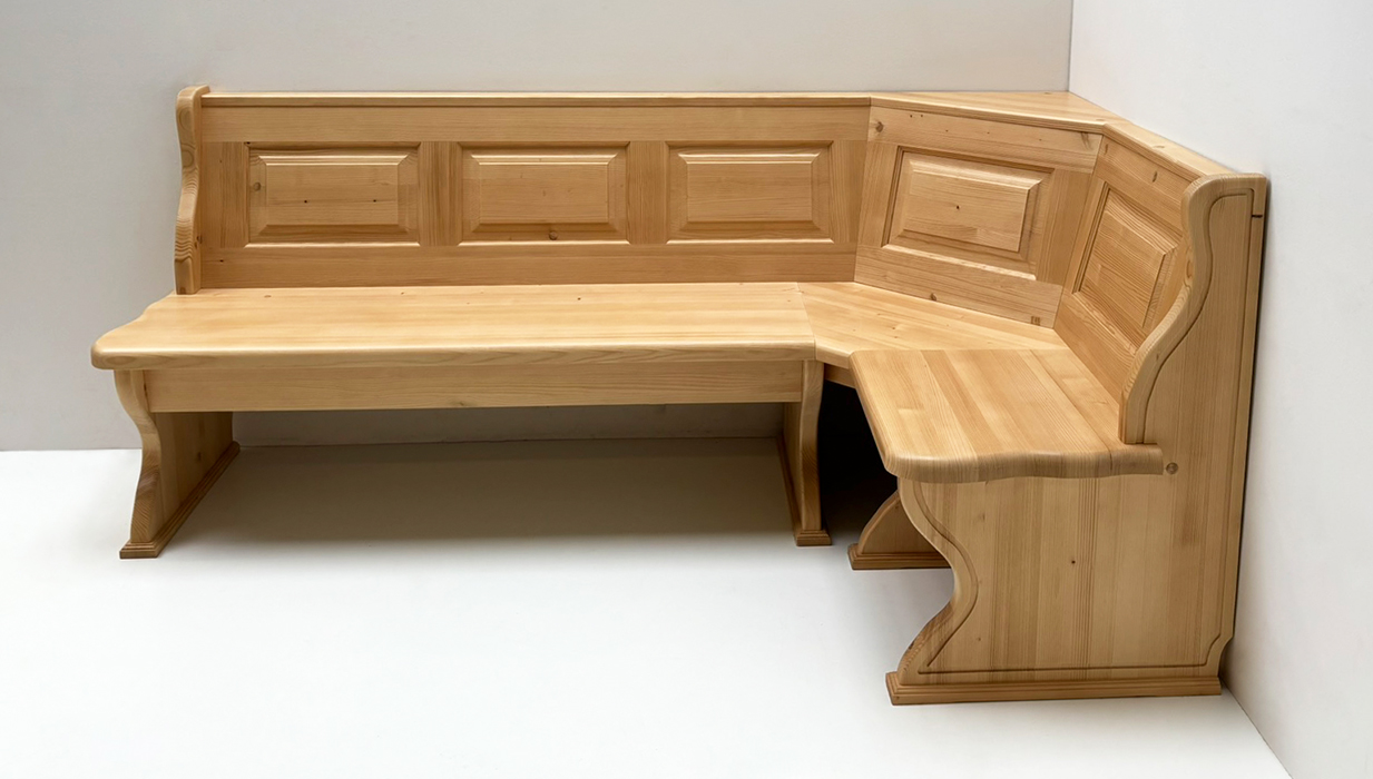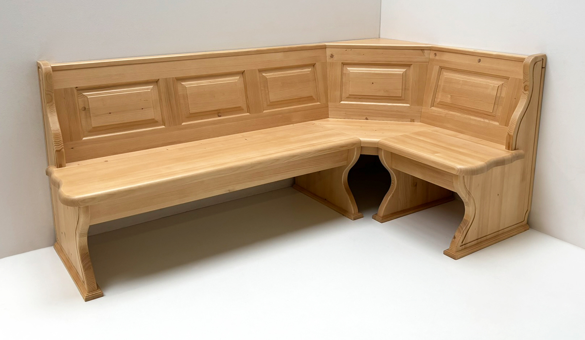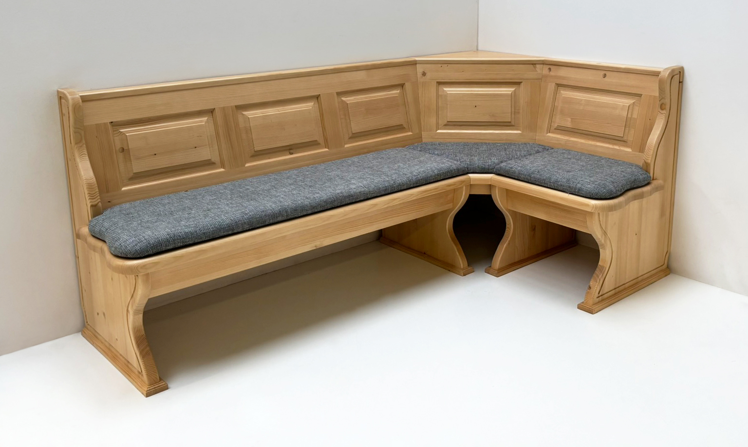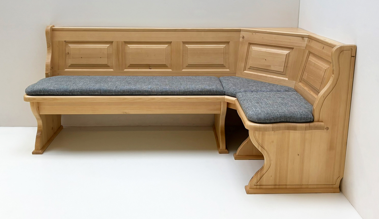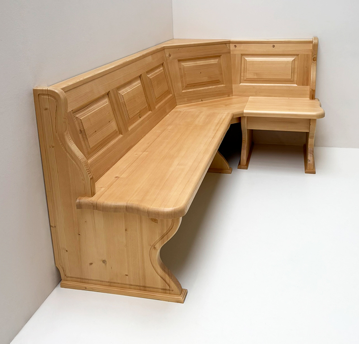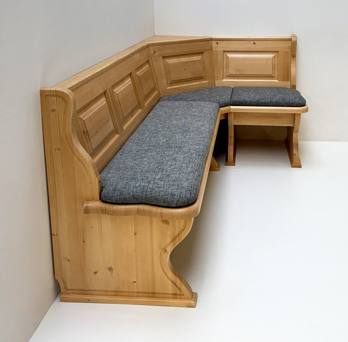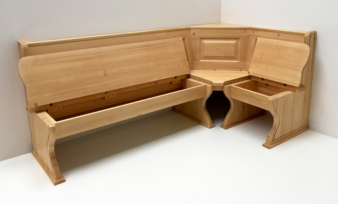 1 Eckbank Modell Lindau: Stellmaß B> 210/120 cm, Außenwangen gerillt, Truhen beidseits