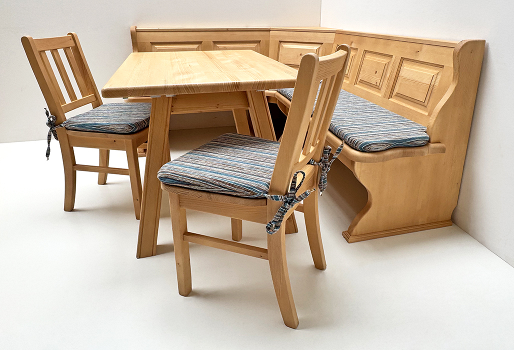 1 Eckbank Modell Lindau: Stellmaß A> 165/195 cm, Außenwangen glatt, Truhen beidseits