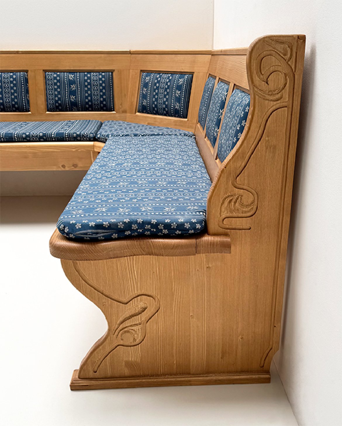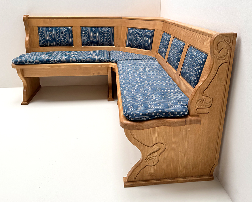 Eckbank Lindau 165/195 cm, Kassettenpolster, Wangen geschnitzt, Truhen, Polster genäht, AF-74854-3