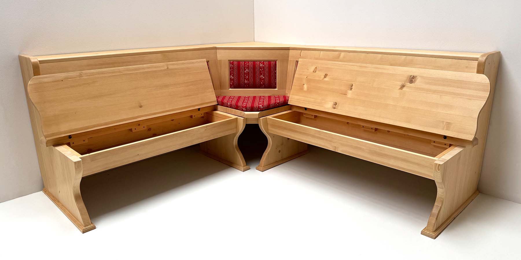 Eckbank Lindau 240/150 cm , Aussenwangen geschnitzt, Kasettenpolster, Polster genäht TS-1667