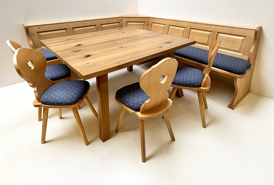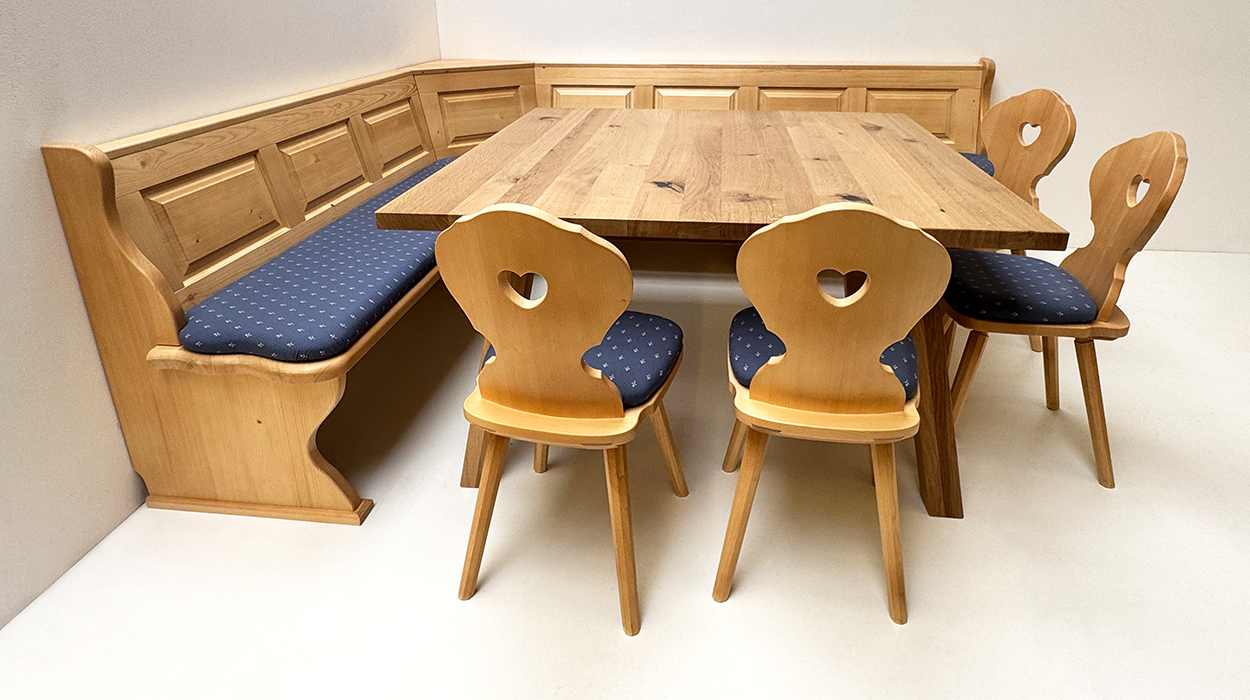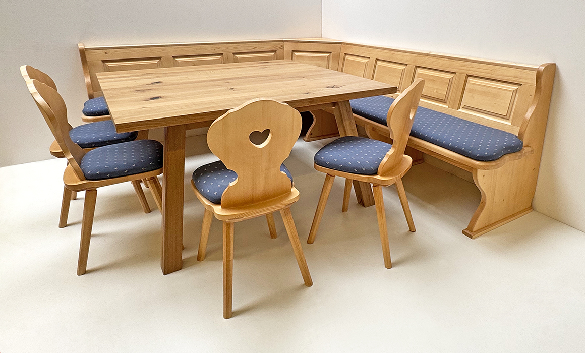 1 Eckbank Lindau ohne Truhen, Außenwangen glatt, gerade Holzkassetten, Füße mit Leiste am Boden