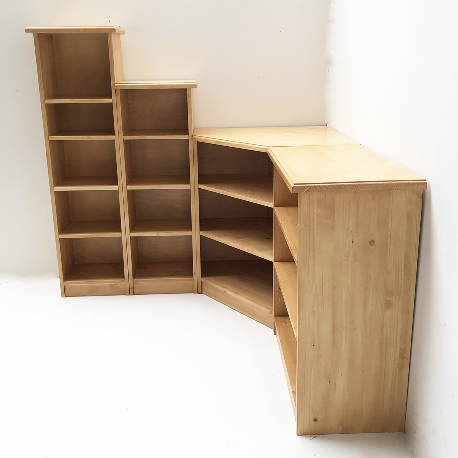 Bücherwand Bücherregal Füssen Wertach 4-fach, Ecklösung , Sondermaß mit Sockel