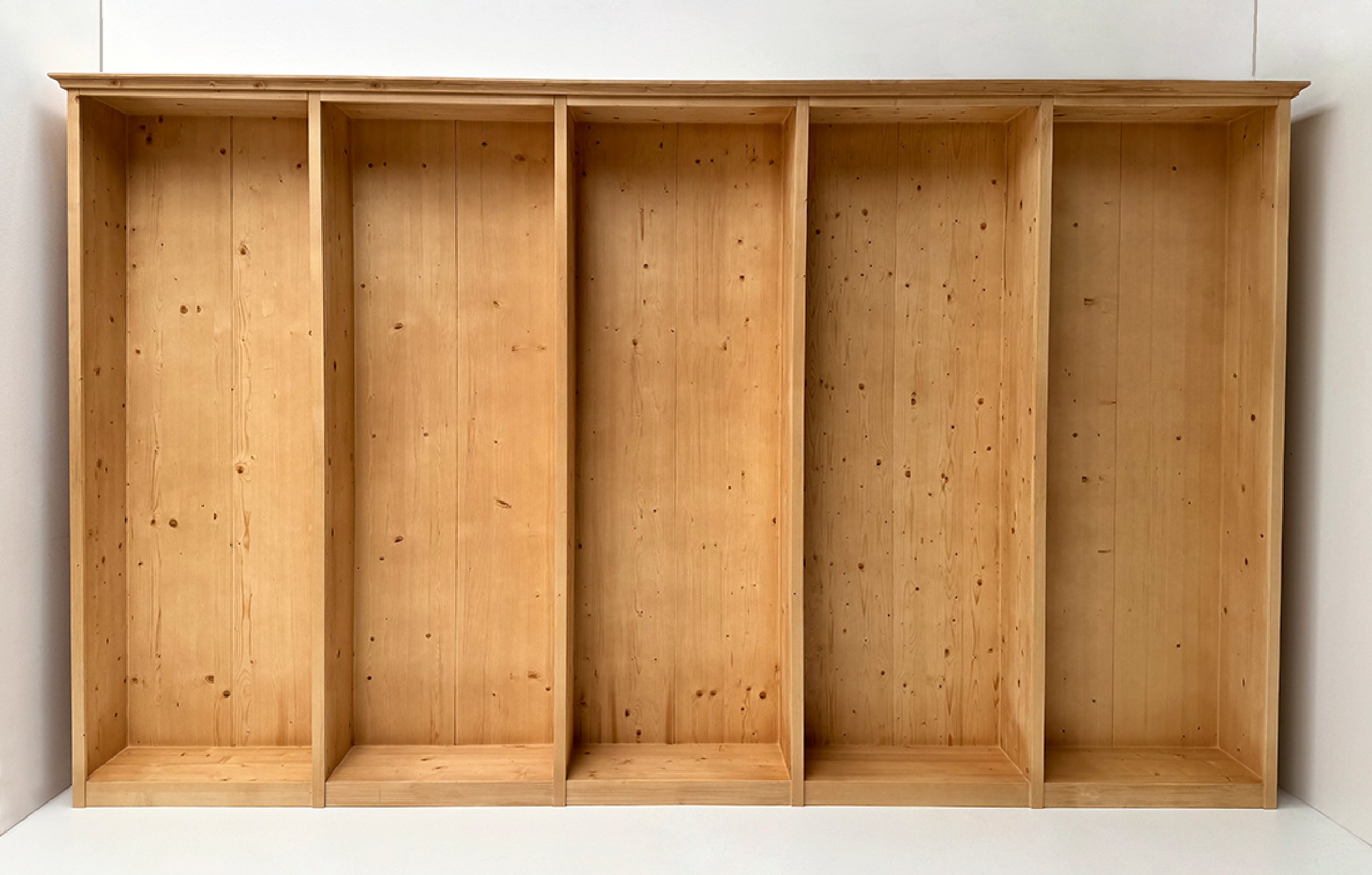 Modulares Bücherregal Füssen n. Skizze, Fichte massiv, zerlegte Ausführung, Breite 400 cm, Höhe 235 cm,