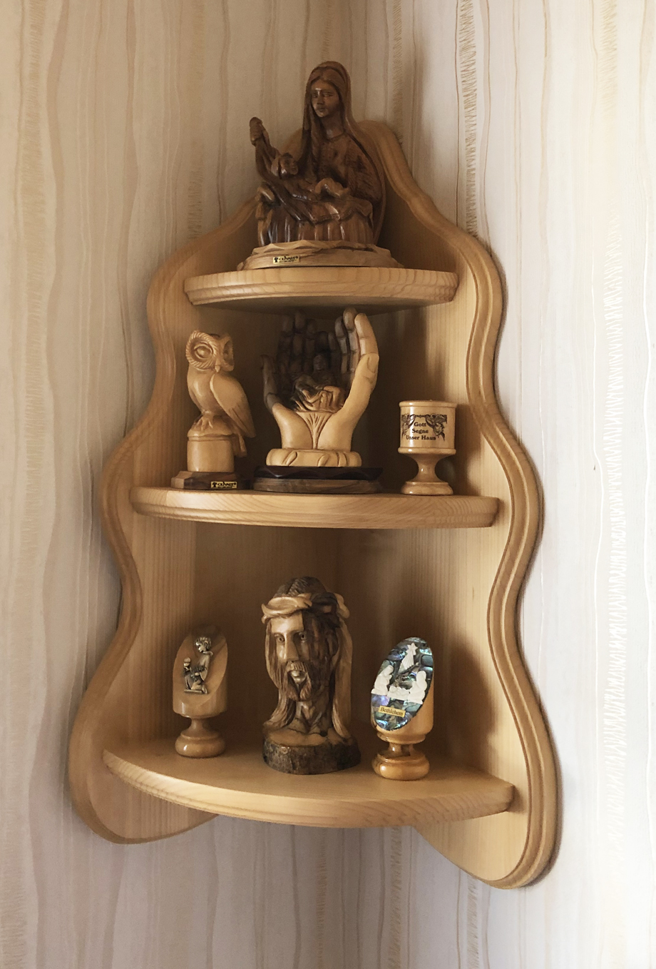1 Eckkonsole mit 3 Etagen über Ecke , links 30 cm, rechts 30 cm, geschwungene Ausführung , Höhe 70 cm,