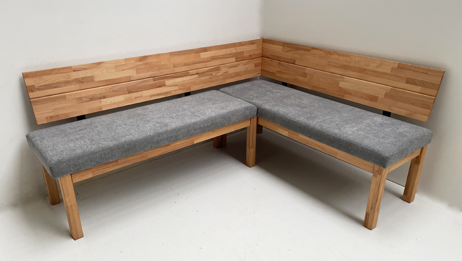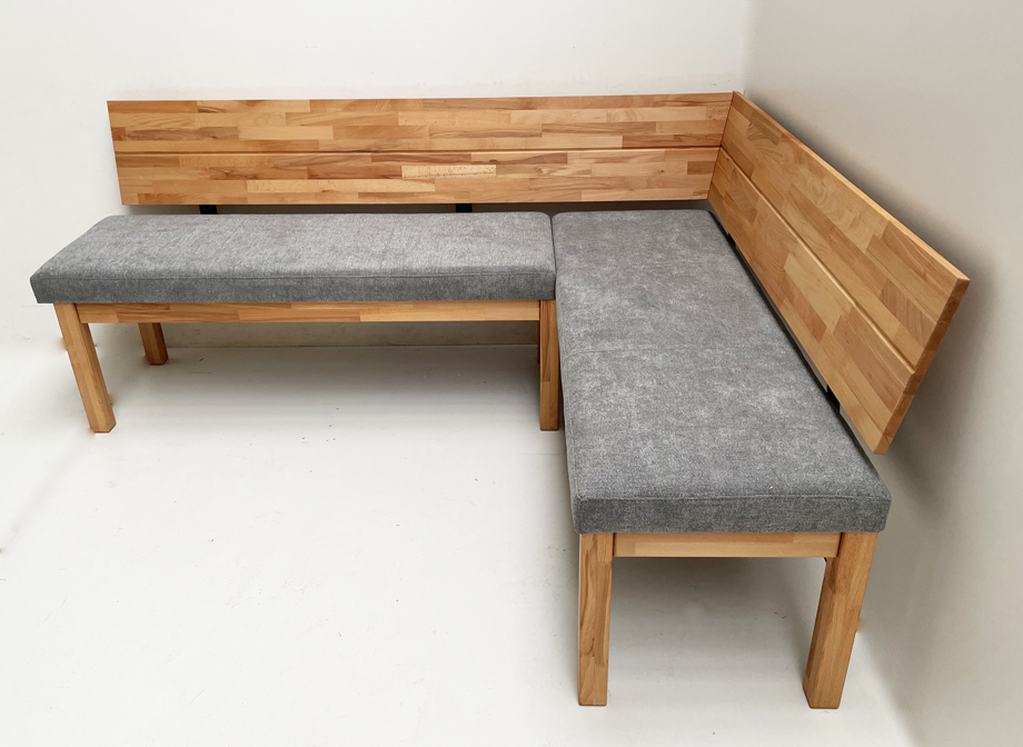 Eckbank Roberto, Buche, 194/155 cm Sitz gepolstert, Lehne Massiv, Mercury Mittelbraun, viele Stoffe