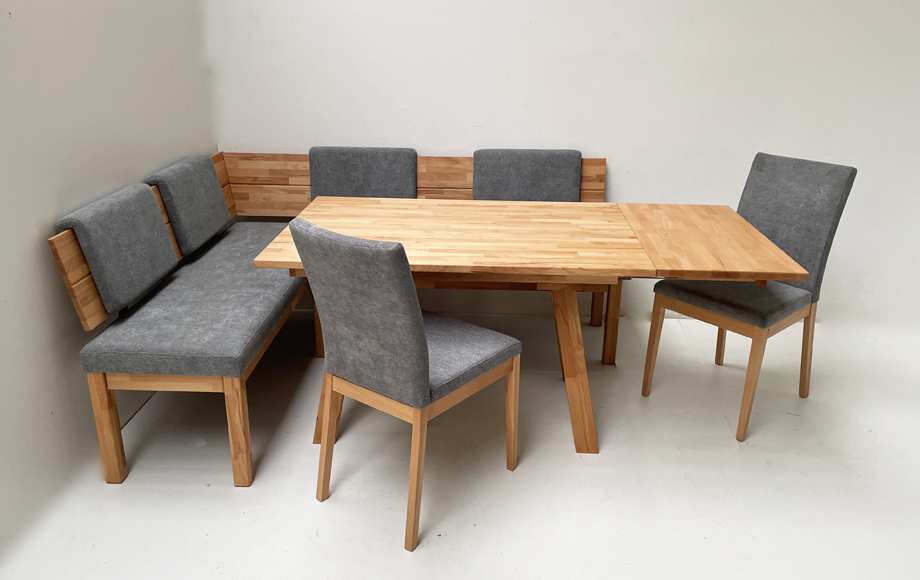 Eckbankgruppe Roberto, Buche, 155/194 cm, Einlegeplatte 45 cm, Einhängepolster, Mercury grau 118