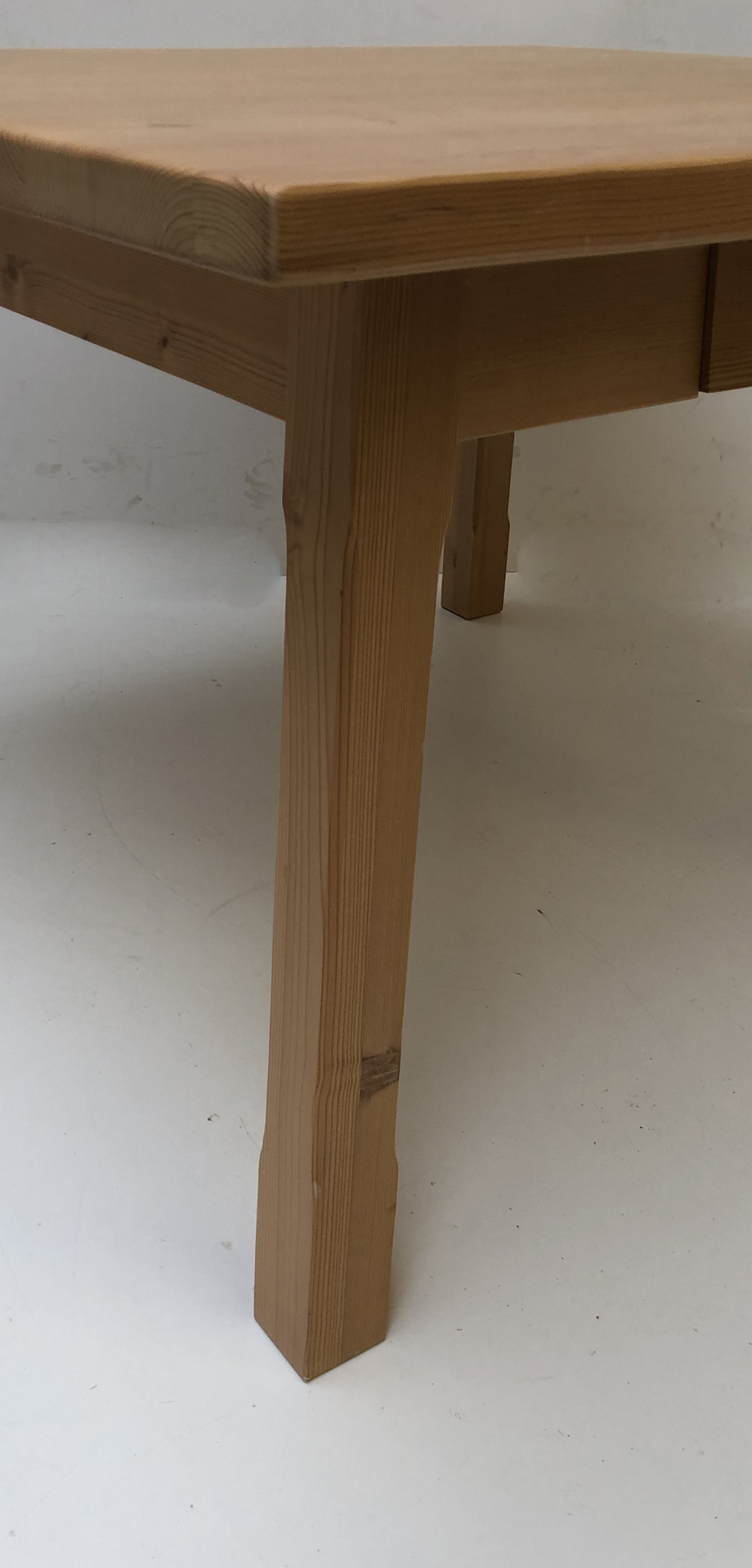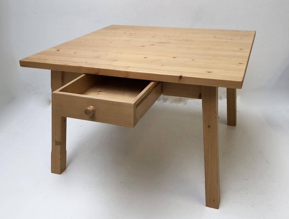 1 Vierfußtisch mit Schubladen, Füße glatt mit Eckfase, 120/120 cm, Fichteplatte 4 cm stark,