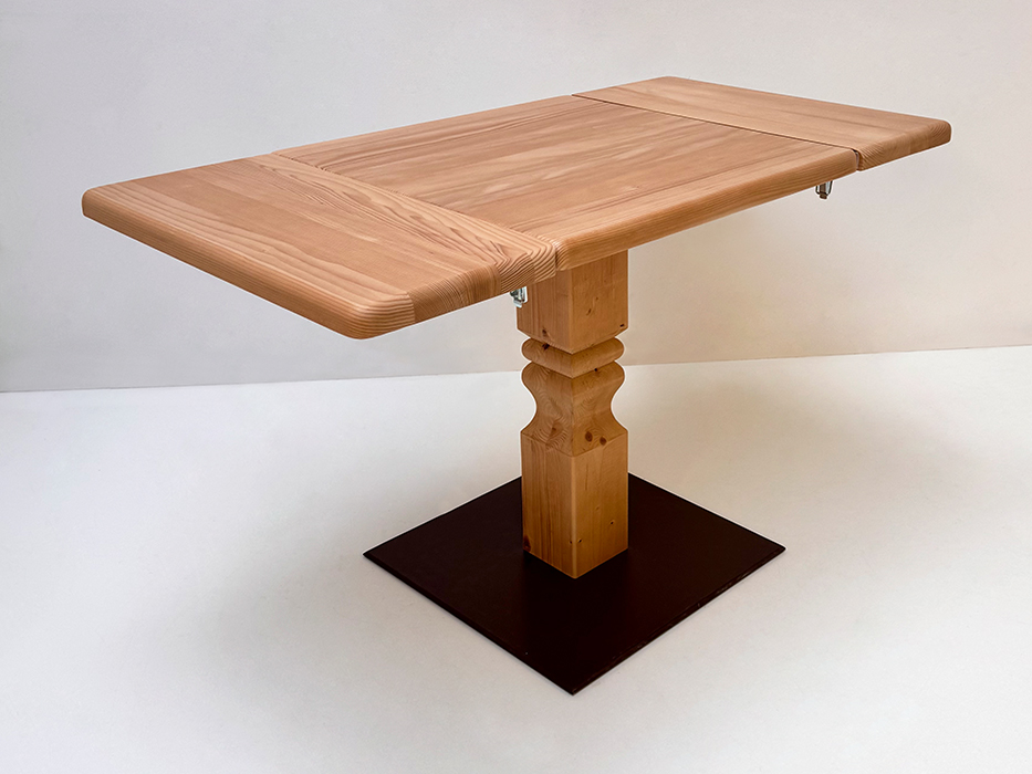 Klostertisch Mittelsäulen-Tisch, Fußscheibe Metall, Fichteplatte 70/70 cm mit 2 Ansteckplatten 30 cm