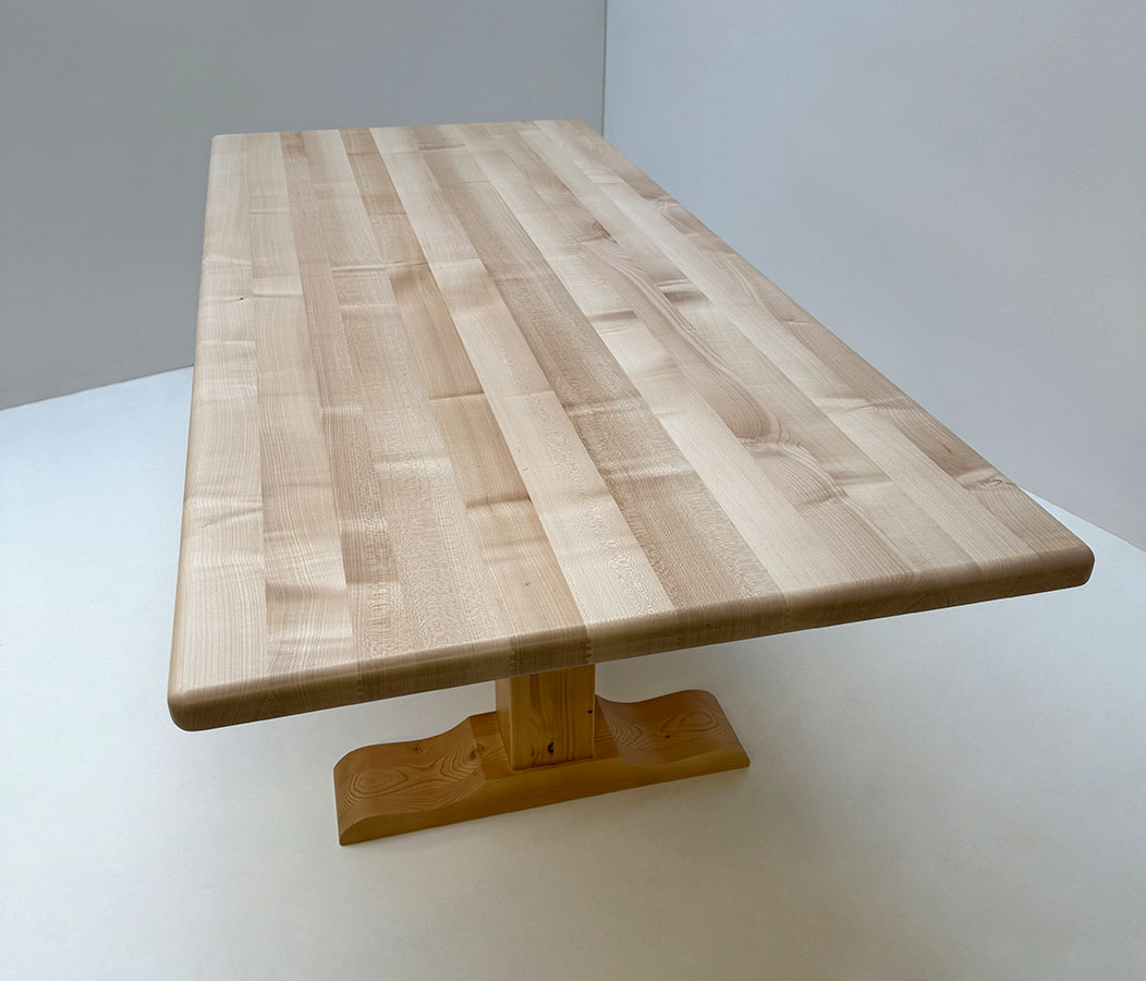 Klostertisch Mittelsäulen-Tisch mit Gefrästen Säulen, 90/180 cm, Ahornplatte massiv