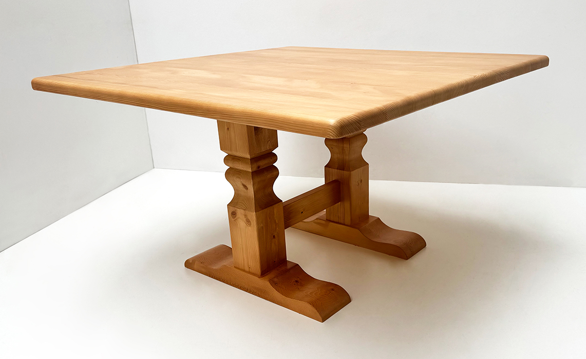 Mittelsäulentisch Klostertisch 130/130 cm, 2 gefräste Säulen und Holzfüßen