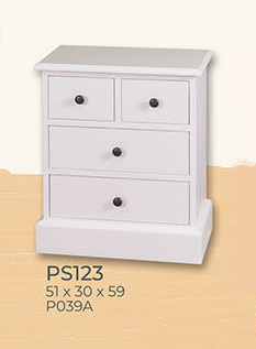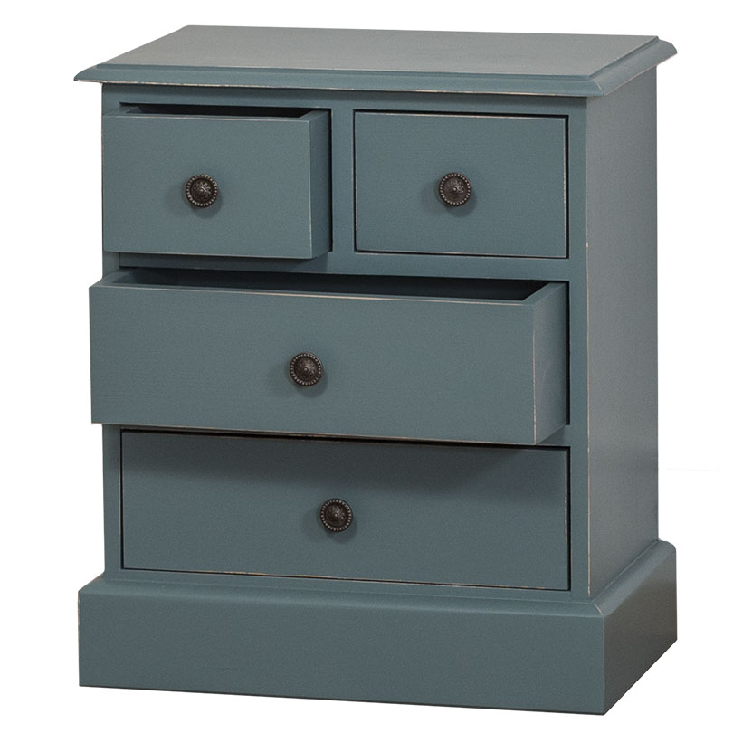 Nachtkästchen Kommode Konsole, 4 Schubladen, Kiefer massiv, antik lackiert