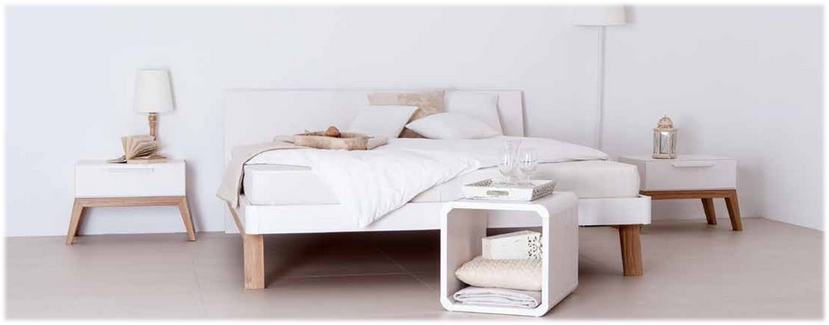 Bett Cortina mit 2 Nachtkästchen in der Holzart Fichte, weiss lackiert