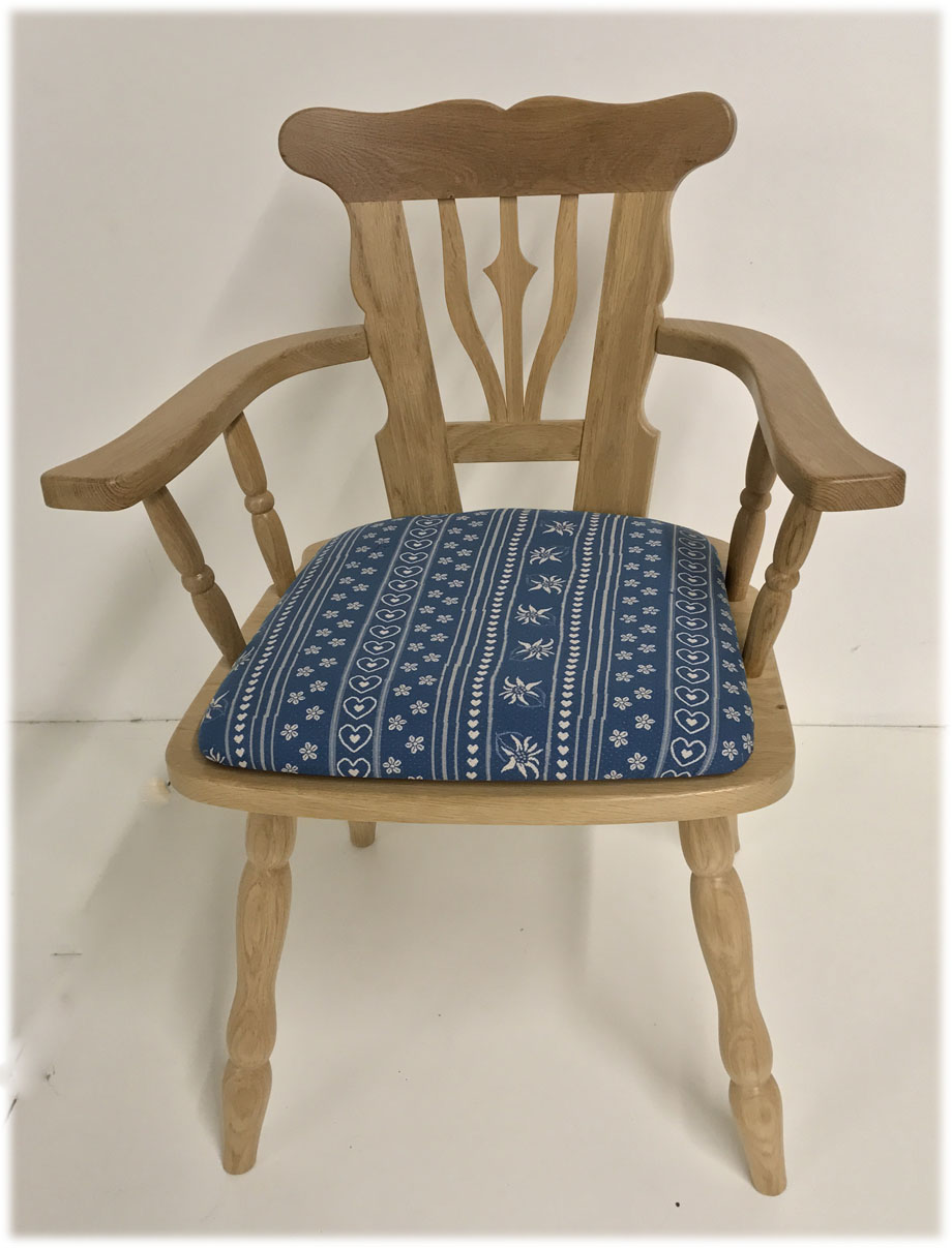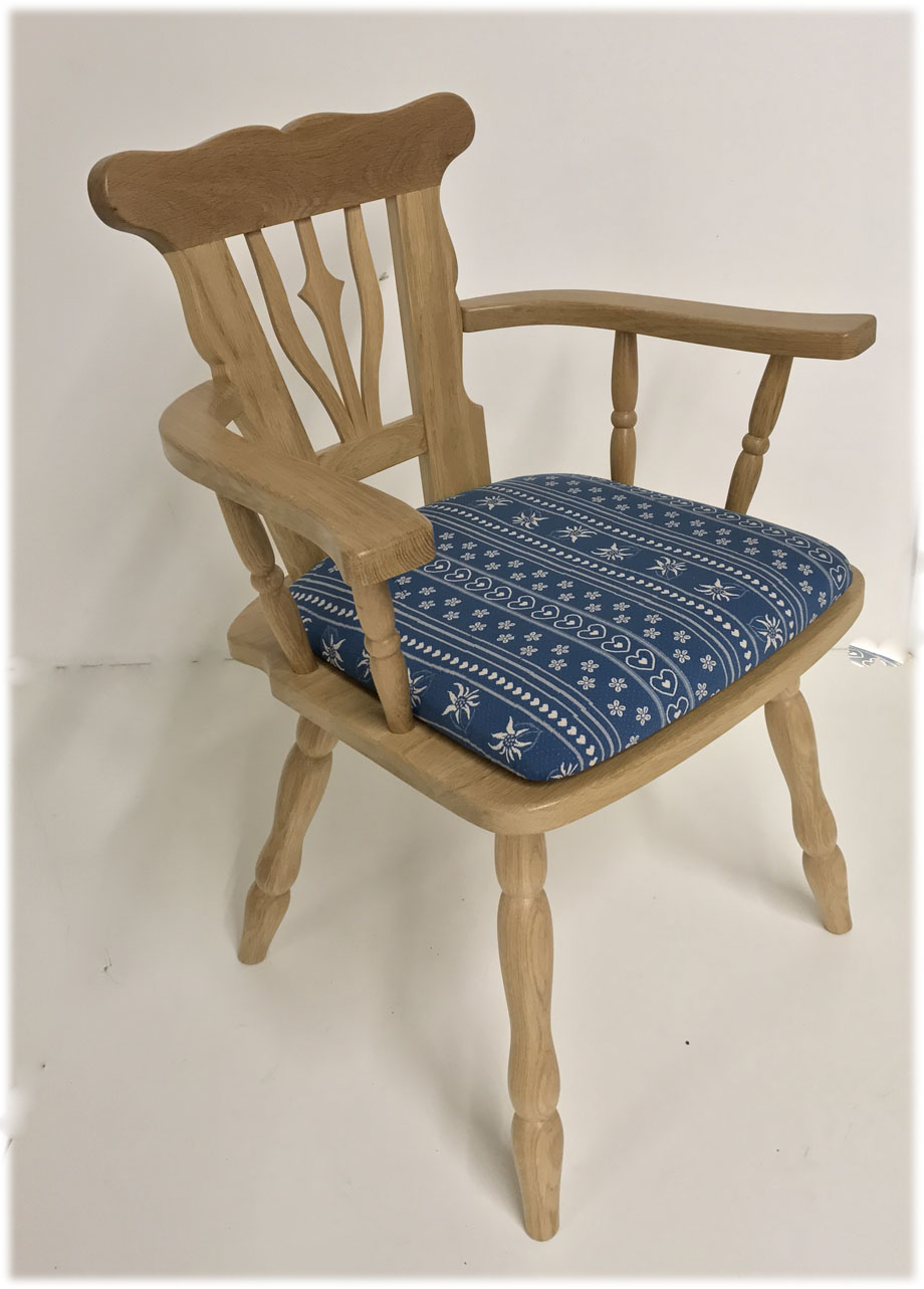 Bauernsessel Armlehnstuhl, Eiche , Polster Stoff AF-74854-3 blau