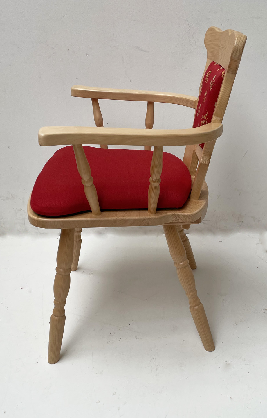 Bauernstuhl Armlehnstuhl Modell 77 mit Rückenpolsterung, in Fichte, Rosner gebeizt und lackiert