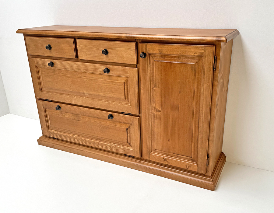 Schuhklappenschrank Füssen, 2 Klappen, 2 Schubladen, 1 Türe, Antik dunkel lackiert (Kleur 2)