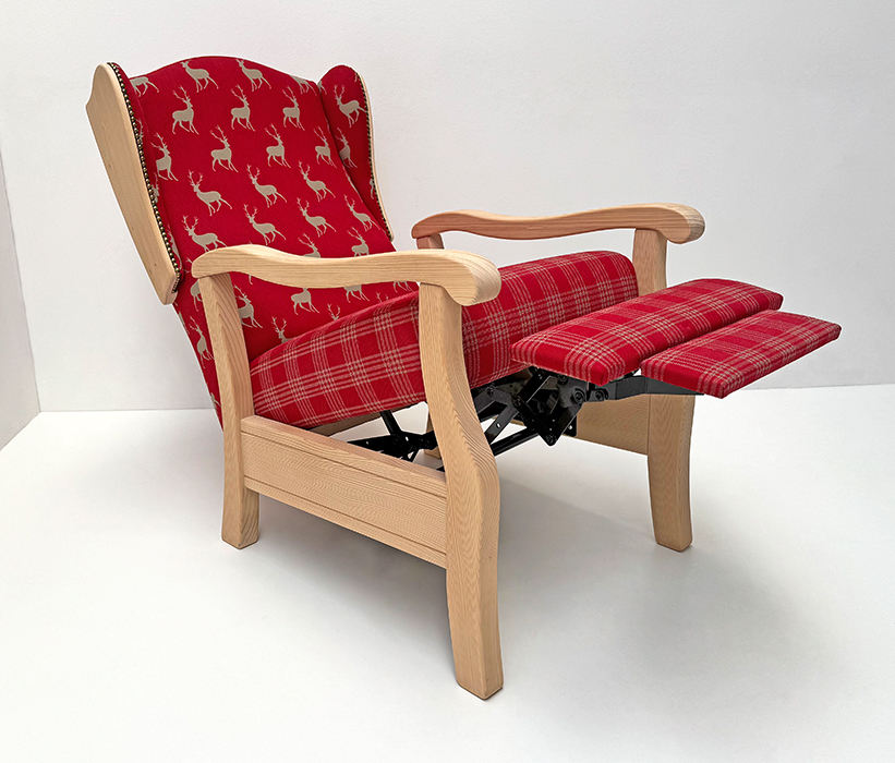 Fernsehsessel TV-Sessel Inzell Ohrenbackensessel, Hirsch rot TS-6177 Karo rot TS-6165