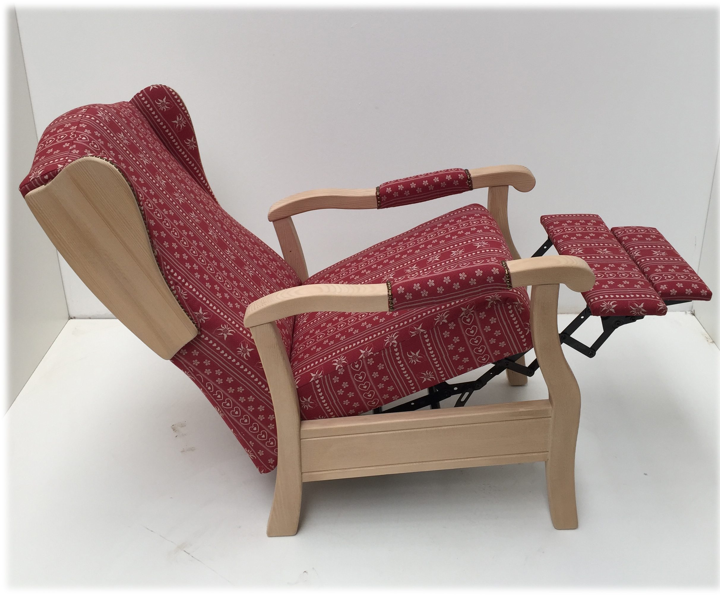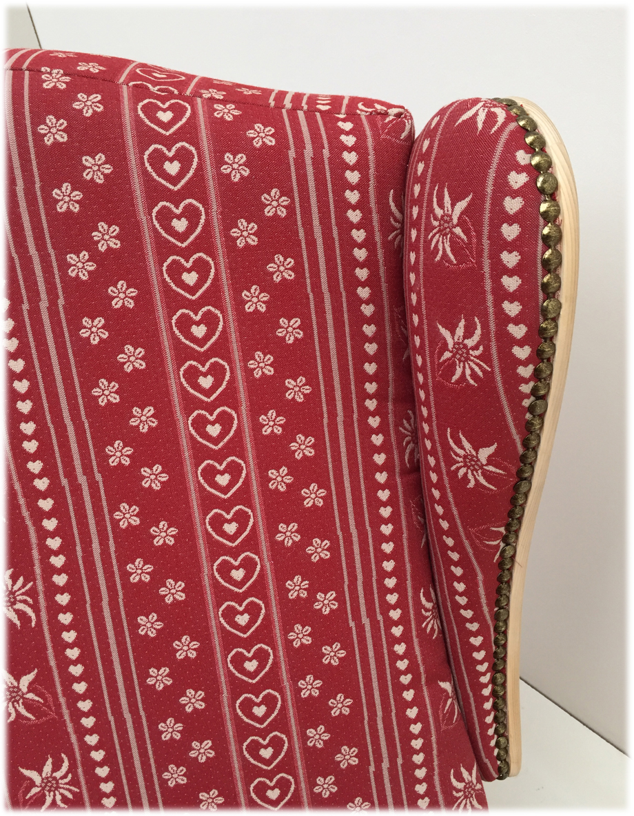 Polsterung Komfort Kaltschaum, Holzteile: Fichte Rosner gewachst, Stoffgruppe 1, Sonderanfertigungen in Ausführung, Farbtönen und Stoffe sind nach Anfrage und Angebot möglich! Abm. 64/112/74 cm, B/H/T cm