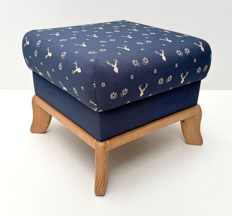 Hocker Sterzing Stoff TS-3003, Hirsch blau, TS-3017, Uni Punkt blau, Landleben