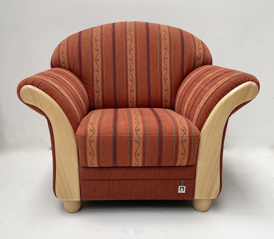 Polstersessel Wallis 344-10, Holzchatosen Fichte, Rosner lackiert, Stoff 838/19+09