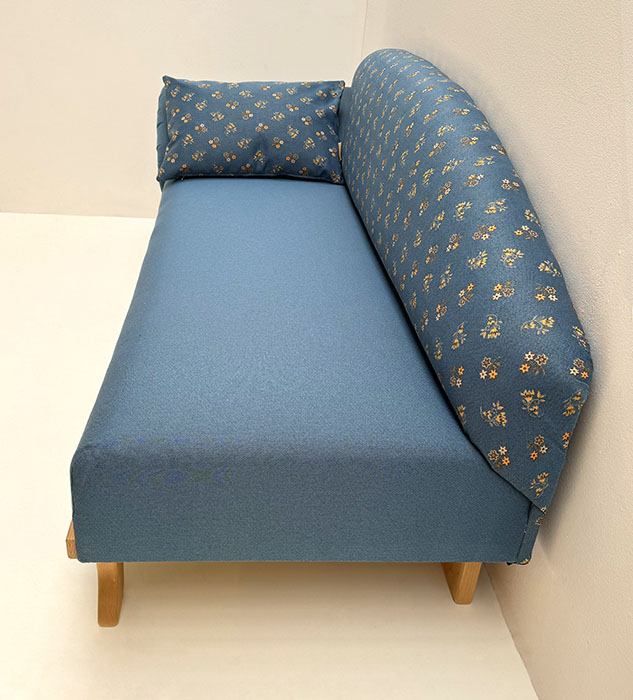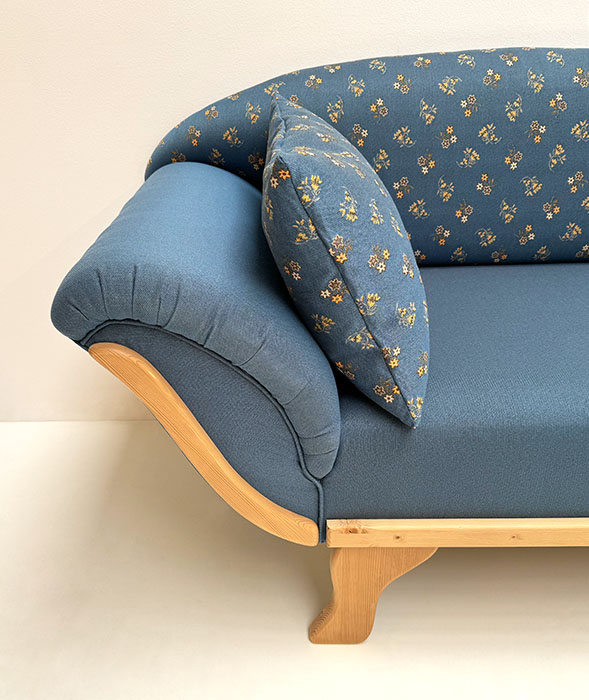 Küchencouch LINA, Kopfteil links, Mülheim Streublume, Mülheim uni blau