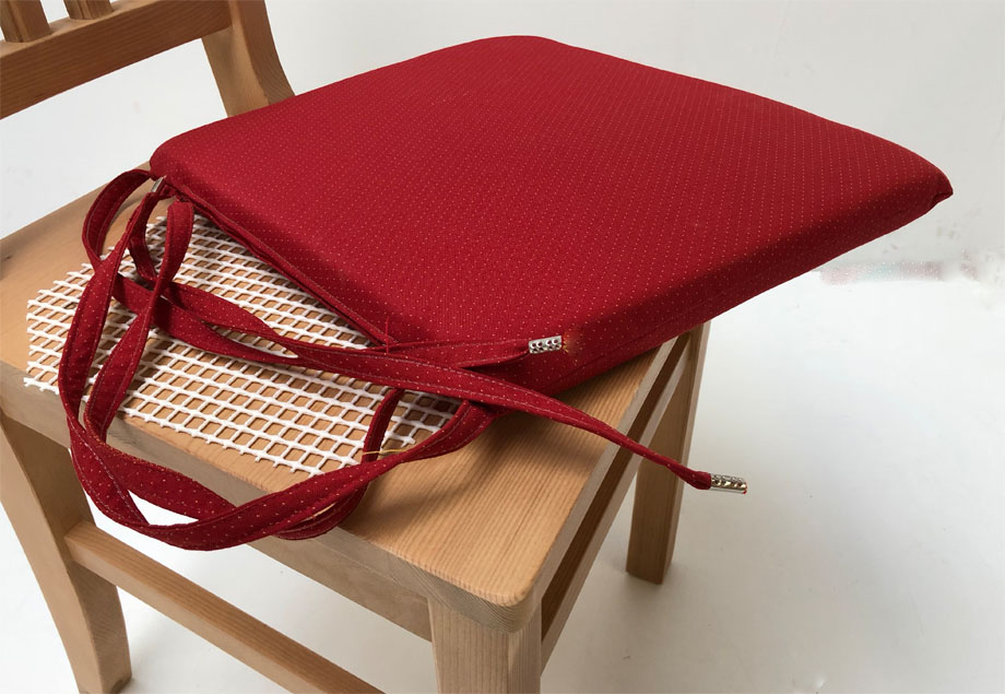 mit Kissenauflage Polster lose genäht mit Reissverschluß zum Abziehen, mit stabilen genähten Bändern zum Festbinden aus dem gleichem Möbelstoff