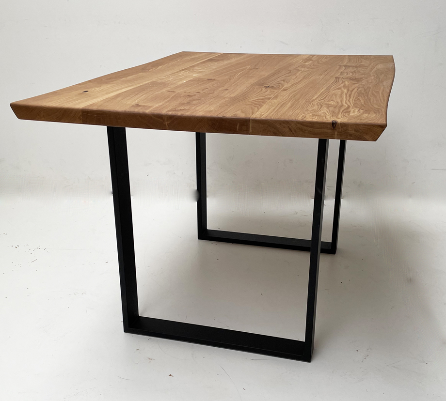 Baumtisch Mod. Oviedo, 140 x 90 cm, Platte massiv mit Baumkante, Holz: Wildeiche, Oberfläche: geölt