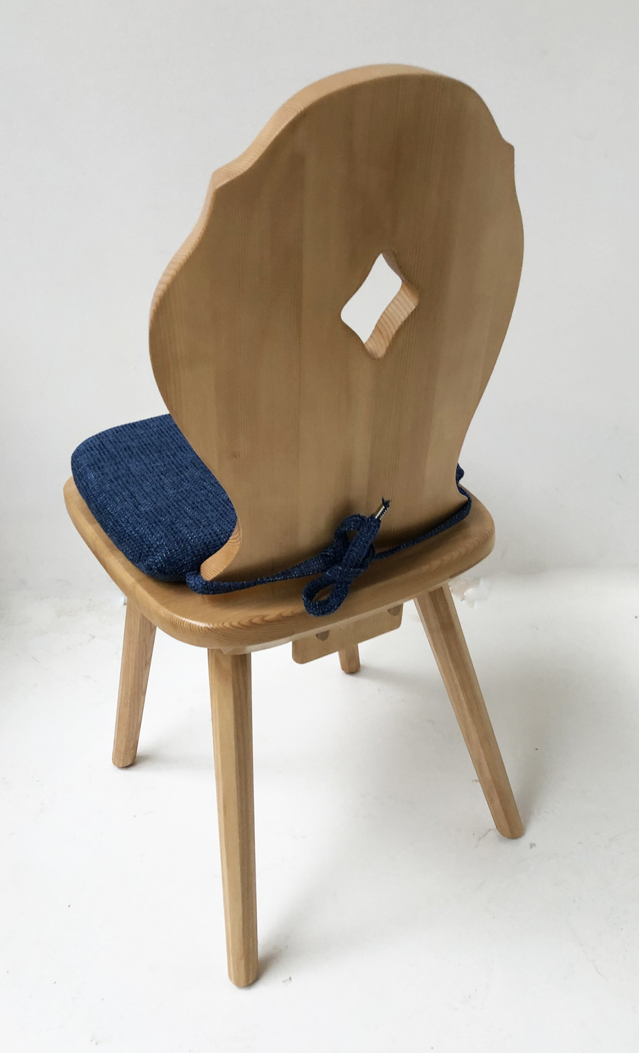 Bauernstuhl 1010 mit gebogener Rückenlehne, Rosner lackiert, Polster Natura 344 blau