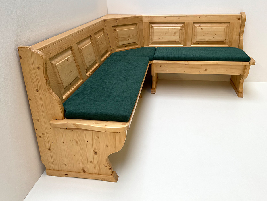 Eckbank Kufstein, 195/165 cm, mit Truhen, Rosner gebeizt und lackiert, Polsterplatte Waidhofen grün